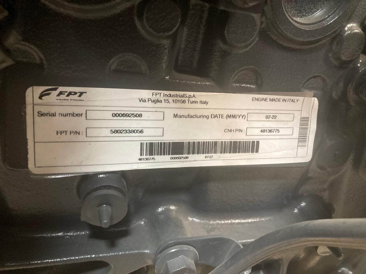 2022 NEW FPT F5BFL413 ENGINE FOR SALE at ADELMAN’S TRUCK PARTS in CANTON, OHIO. COMPLETE MINUS ECM, STARTER and ALTERNATOR, with COMMON RAIL FUEL SYSTEM, DIESEL, 3.4 LITERS, TURBOCHARGED and AIR TO AIR. F5BFL413A*C009, FPT PART # , and CNH PART # 48136775.