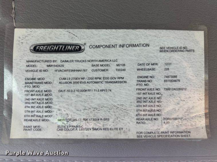 2015 Freightliner Business Class M2 ambulance, Miles: 122,436 on odometer, Hours: 10,192 on meter, VIN: 3ALACWDU9FDGL0361, Engine, Cummins...