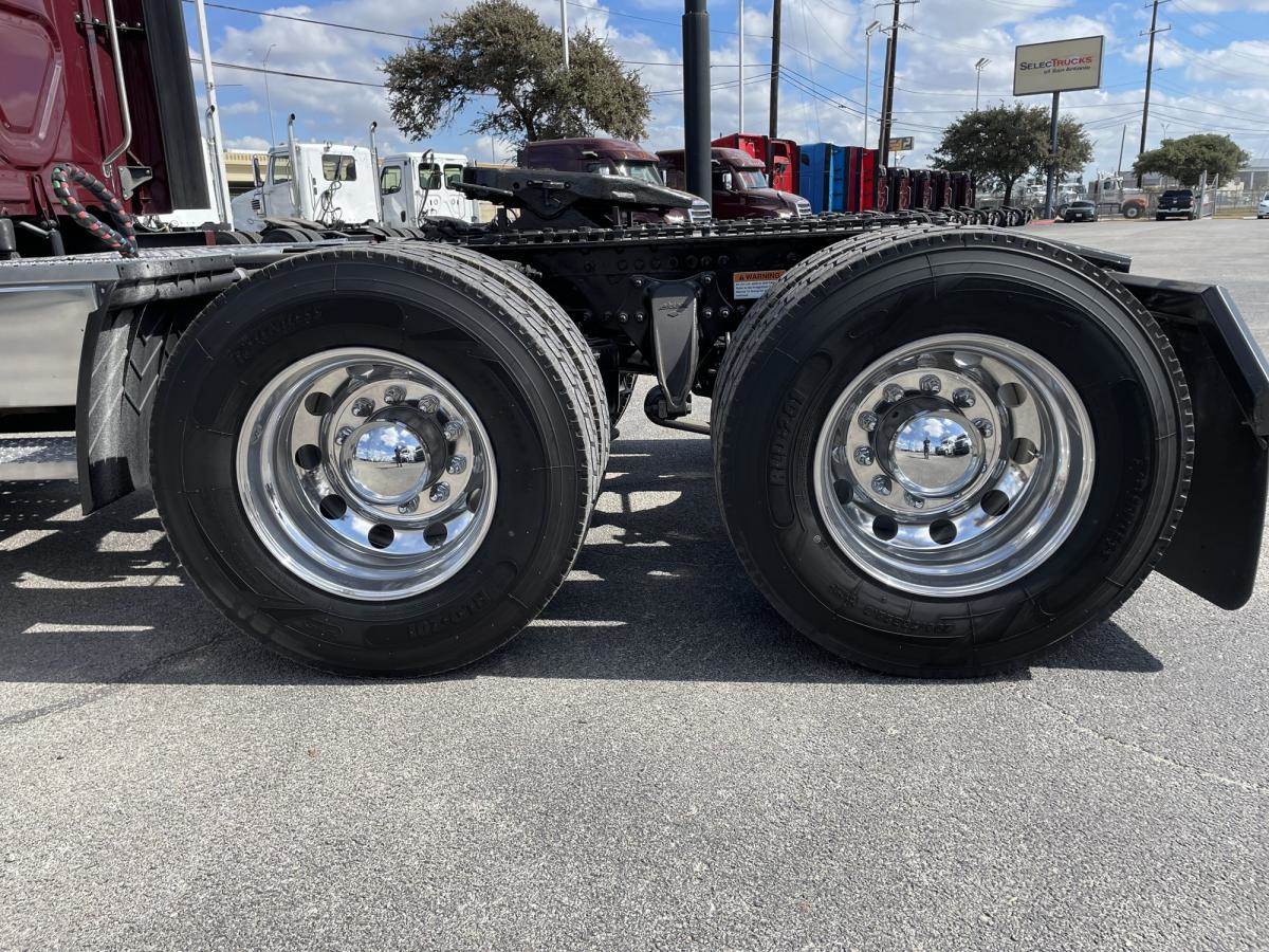 This Maroon Elite Mid Roof has tons of chrome and polished aluminum to make this one shine! Powered by a Detroit DD13, paired with the DT12 auto trans for optimum fuel efficiency, will make this a money maker for sure! Outside you’ll see, chrome grille, center bumper trim & side mirrors, wheel trims and lugnut covers. Also equipped with cat walks and steps to access from both sides. Looking inside there’s power windows and mirrors. Smartwheel, AM/FM/SXM/AUX radio and more! A 72" sleeper with lots of cabinet space, Refrigerator and a ParkSmart APU bringing much needed comfort to your down time. Safety features include LED headlights, Fog lights, ABS, and the Collision Mitigation System. Easy Financing & Extended Warranty Available! Stock#486948