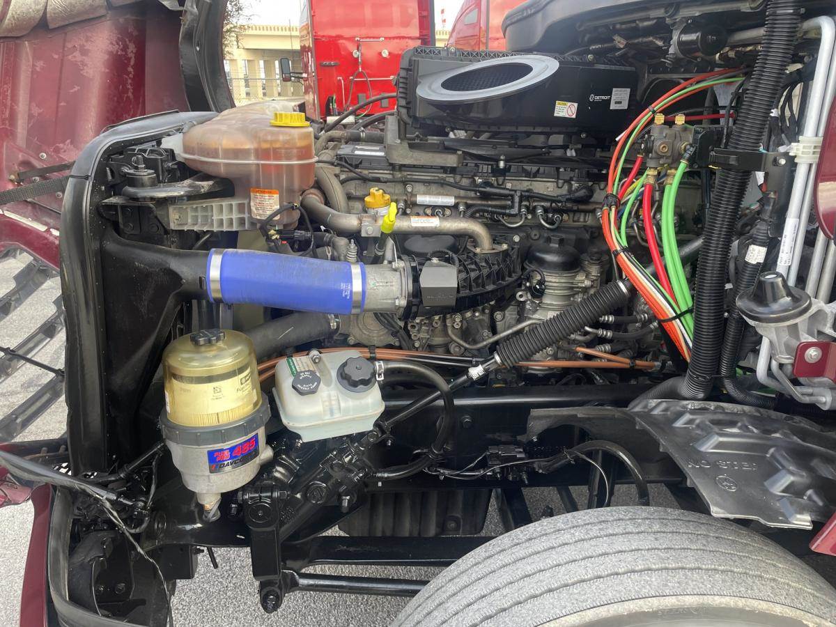 This Maroon Elite Mid Roof has tons of chrome and polished aluminum to make this one shine! Powered by a Detroit DD13, paired with the DT12 auto trans for optimum fuel efficiency, will make this a money maker for sure! Outside you’ll see, chrome grille, center bumper trim & side mirrors, wheel trims and lugnut covers. Also equipped with cat walks and steps to access from both sides. Looking inside there’s power windows and mirrors. Smartwheel, AM/FM/SXM/AUX radio and more! A 72" sleeper with lots of cabinet space, Refrigerator and a ParkSmart APU bringing much needed comfort to your down time. Safety features include LED headlights, Fog lights, ABS, and the Collision Mitigation System. Easy Financing & Extended Warranty Available! Stock# 486879