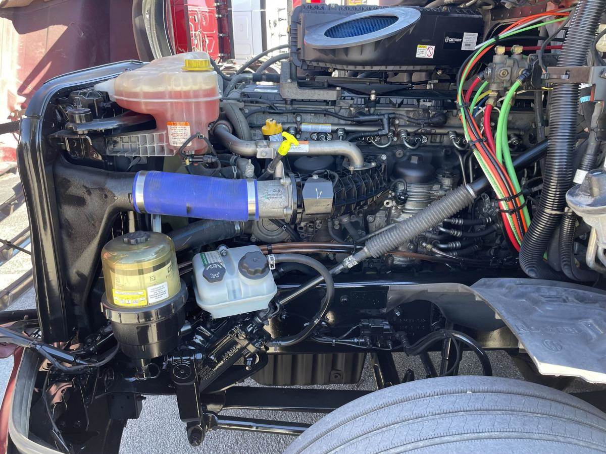 This Maroon Elite Mid Roof has tons of chrome and polished aluminum to make this one shine! Powered by a Detroit DD13, paired with the DT12 auto trans for optimum fuel efficiency, will make this a money maker for sure! Outside you’ll see, chrome grille, center bumper trim & side mirrors, wheel trims and lugnut covers. Also equipped with cat walks and steps to access from both sides. Looking inside there’s power windows and mirrors. Smartwheel, AM/FM/SXM/AUX radio and more! A 72" sleeper with lots of cabinet space, Refrigerator and a ParkSmart APU bringing much needed comfort to your down time. Safety features include LED headlights, Fog lights, ABS, and the Collision Mitigation System. Easy Financing & Extended Warranty Available! Stock#486963