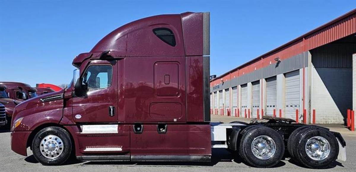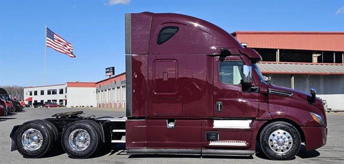 This Maroon Elite Raised Roof has tons of chrome and polished aluminum to make this one shine! Powered by a Detroit DD13, paired with the DT12 auto trans for optimum fuel efficiency, will make this a money maker for sure! Outside you’ll see, chrome grille, center bumper trim & side mirrors, wheel trims and lugnut covers. Also equipped with cat walks and steps to access from both sides. Looking inside there’s power windows and mirrors. Smartwheel, AM/FM/SXM/AUX radio and more! A 72" sleeper with lots of cabinet space, Refrigerator and a ParkSmart APU bringing much needed comfort to your down time. Safety features include LED headlights, Fog lights, ABS, and the Collision Mitigation System. Easy Financing & Extended Warranty Available! Stock# 501179