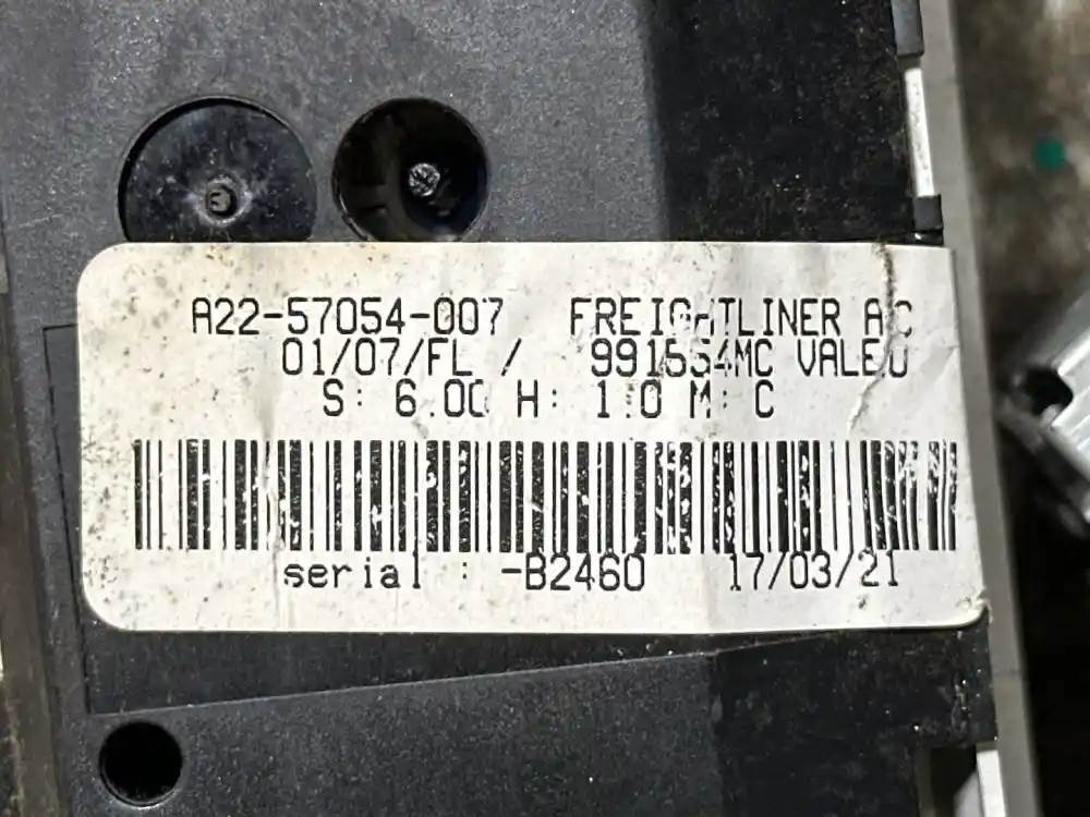 (Used) 2021 Freightliner M2 106, TEMPERATURE CONTROL ASSEMBLY- Part Number: A22-57054-007, Settings: Fan Speed, Temperature, Air Position, Recycle Air, Material: Plastic, Reference images for condition. For more information about this item, give us a call. We ship Worldwide! (CRG HEAVY TRUCK PARTS) 929 W PULASKI HWY, ELKTON, MD 21921, Material: Plastic