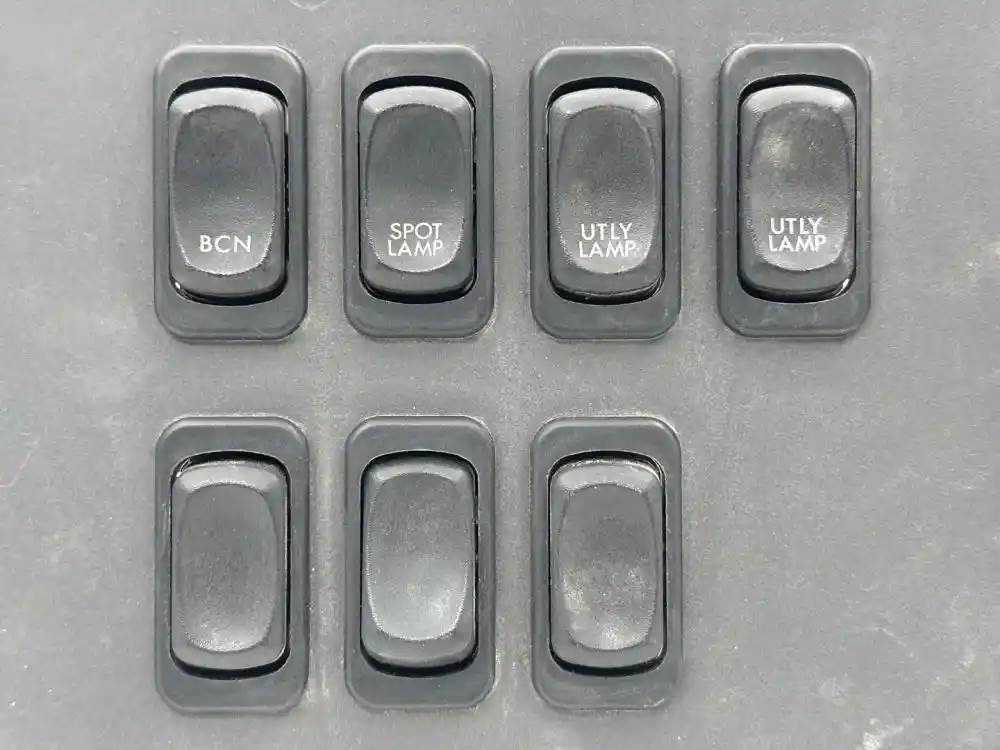 (Used) 2022 Freightliner M2 106, MISCELLANEOUS DASH SWITCHES- Controls: Window Switch, Particulant Filter Regeneration, Doors Lock, BCN, Spot Lamp, Utly Lamp, Power Outlet, Material: Aluminum, Reference images for condition. For more information about this item, give us a call. We ship Worldwide! (CRG HEAVY TRUCK PARTS) 929 W PULASKI HWY, ELKTON, MD 21921, Material: Aluminum