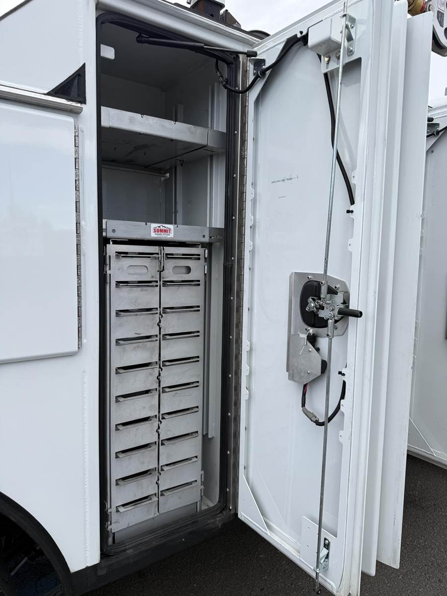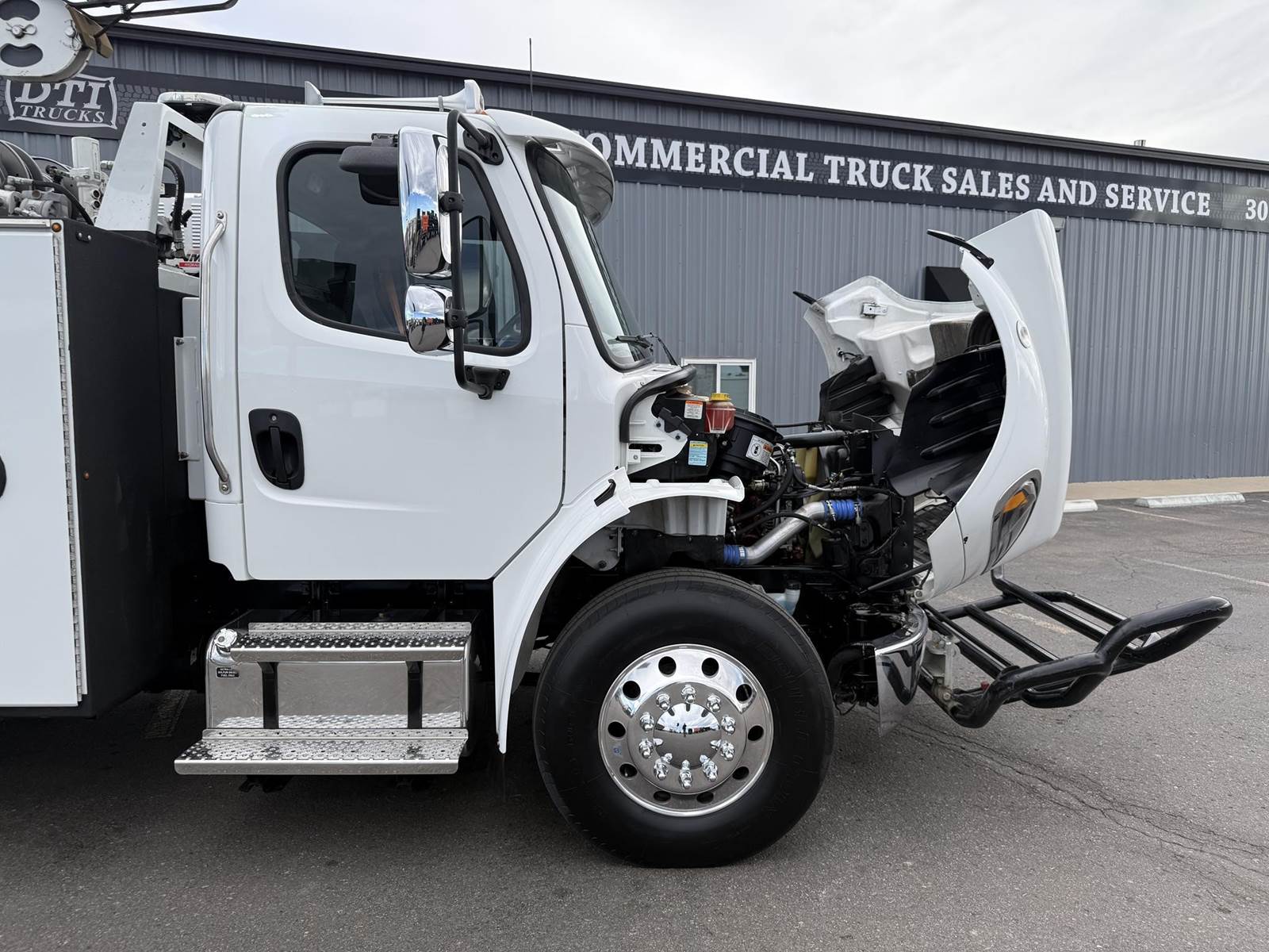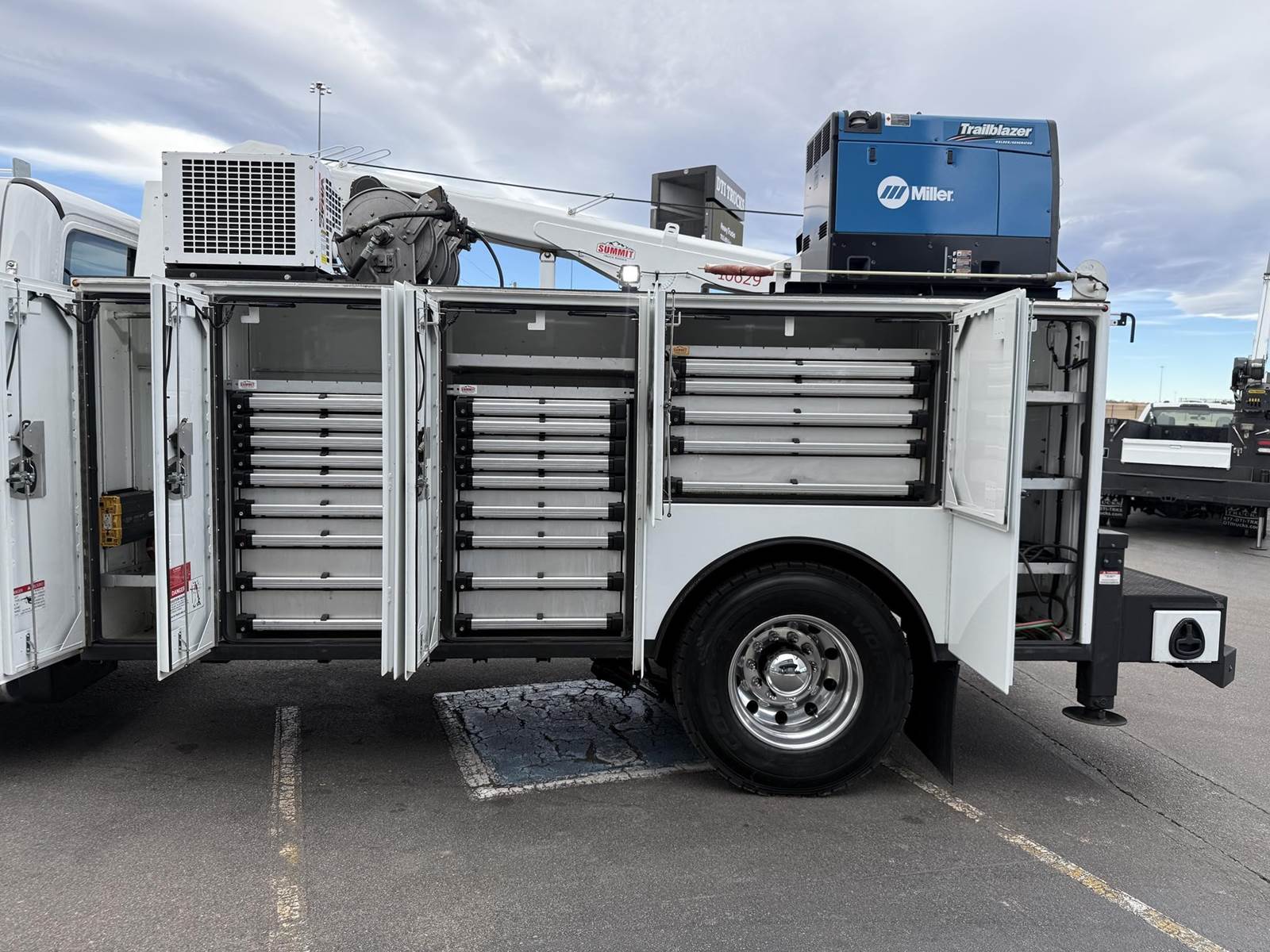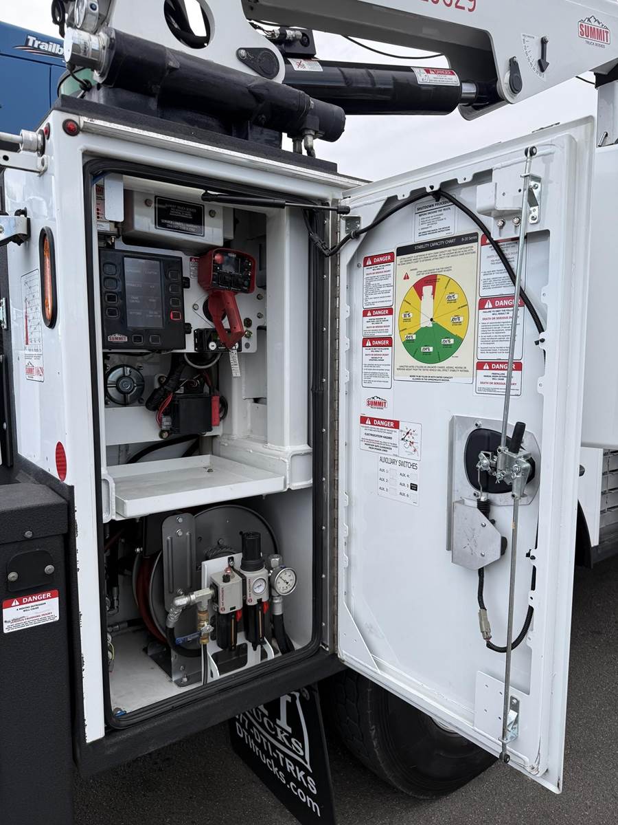 2022 Freightliner M2-106 Mechanics Truck, 8.9L Cummins L9 Diesel Engine, 350 HP, Engine Brake, Allison 3000 RDS 6 Speed Automatic Transmission, 137,641 ECM Verified Miles & 5,444 ECM Verified Engine Hours, 33K GVWR (12K Steer Axle, 21K Drive Axle), Air Ride Suspension With Dump Valve, 5.22 Axle Ratio, Diff Lock,194” Wheel Base, 127” CTA, 11R22.5 Tires All Mounted On Aluminum Wheels, Dual 50 Gallon Aluminum Diesel Fuel Tanks, Block Heater, CARB Compliant, Air Ride Cab, Air Ride Driver Seat, Bench Passenger Seat, A/C, Tilt & Telescoping Steering Wheel, Cruise Control, Bluetooth Radio, Power Windows & Locks, Power & Heated Mirrors, 14’ Summit Mechanics Body, (4) Drawer Packs, (1) Bolt Bin, Vented Oxy-Acetylene Cabinet With Hose Reel, Gang Locks, Summit 10629 Hydraulic Crane, 10,000 LB Max Capacity, 29’ Max Reach, (2) Boom Lights, Wireless Remote, Hydraulic Outriggers, VMAC H40 Hydraulic Air Compressor (40 CFM @ 100 PSI), Miller Trailblazer 325 Welder / Generator With Only 32 Hours, Pre-Wired For In Cab Inverter, Summit Lube Skid With All Products On Metered Reels, (1) 100 Gallon Waste Oil Tank With Diverter Valve, (1) 50 Gallon Product Tank, (1) 50 Gallon Antifreeze Tank, (1) Strobe Light, (6) LED Work Lights, 24” Work Bench Bumper With Vise, 2.5” Receiver Hitch, Battery Cutoff Switch. This Heavy Duty Freightliner Mechanics Truck Is Available At DTI Trucks In Denver, CO. Stock #17685D. Call Or Text Brent For More Information (303) > 598 > 1923