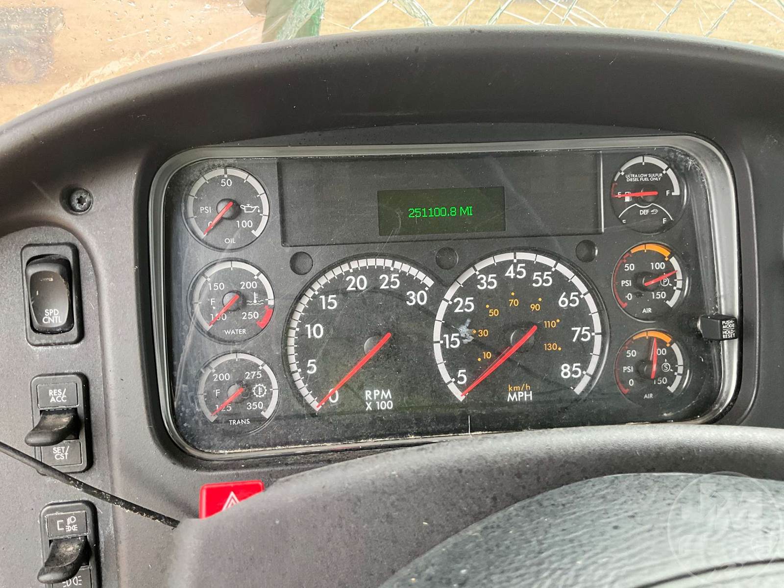 SINGLE AXLE CAB & CHASSIS, DETROIT, DD8 7.7L, HP 260HP, ALLISON, AUTOMATIC, AIR RIDE SUSPENSION, 250" " WB, C/A: 185", 10K FRONTS, 17K REARS, AIR LIFT, ENGINE BRAKE, CRUISE CONTROL, STEEL DISC WHEELS, 275/80R22.5 TIRES, 26000 GVW, HOUR METER READS: 5201, ODOMETER READS: 251099, ***CAB DAMAGE***