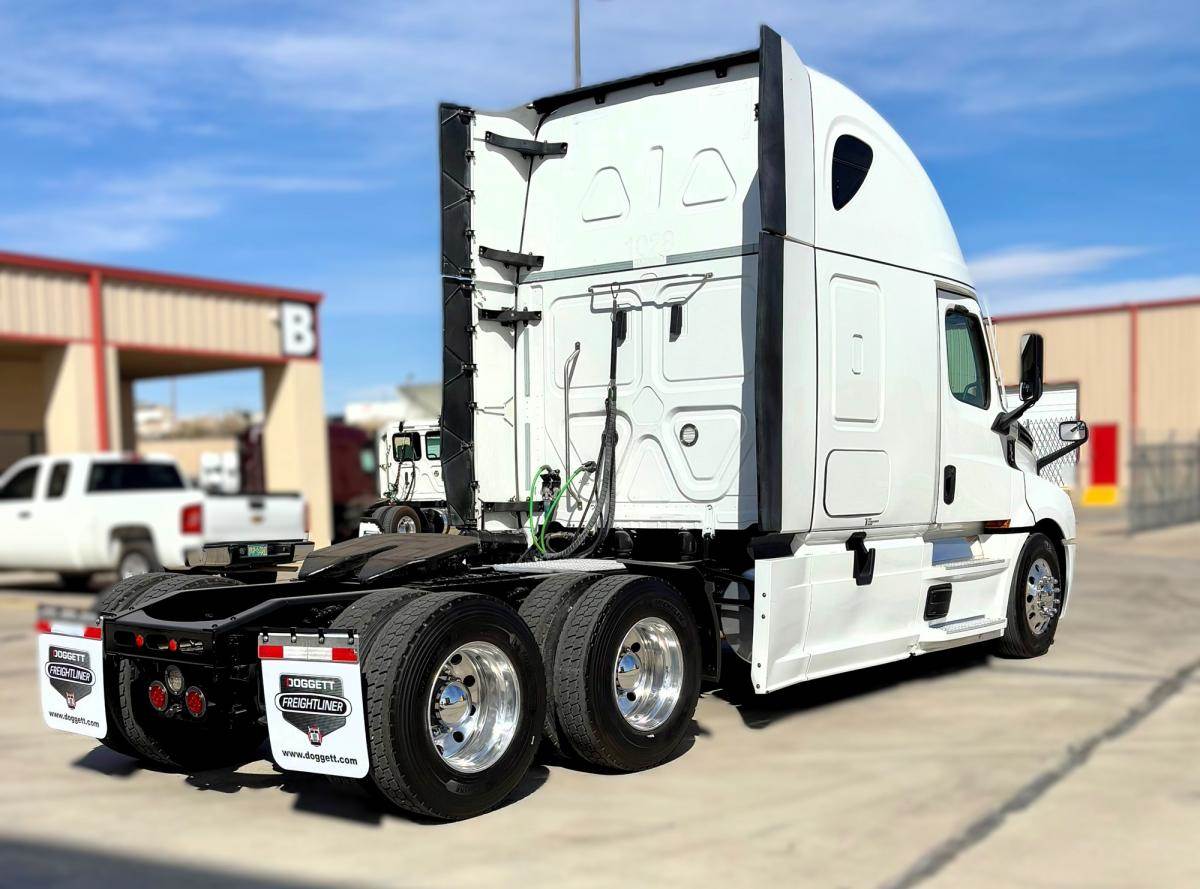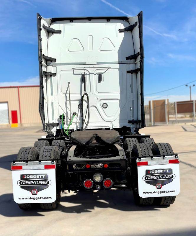 2022 Freightliner Cascadia 126 Powered by a DD15 Engine with 400ph and a DT 12-12 Speed Automatic Transmission. 120 Gallon Dual Fuel Tanks. A 72" Double Bunk Raised Roof Sleeper with lots of Cabinet Space. Power Window Power Locks & A Smart Wheel.