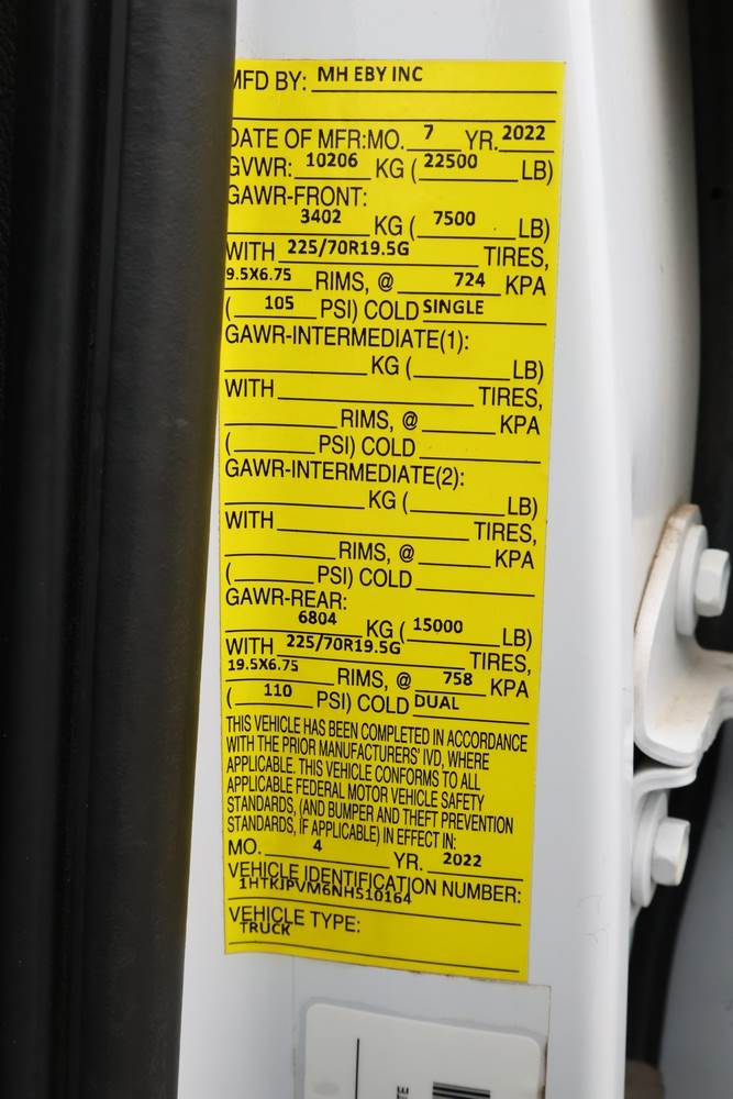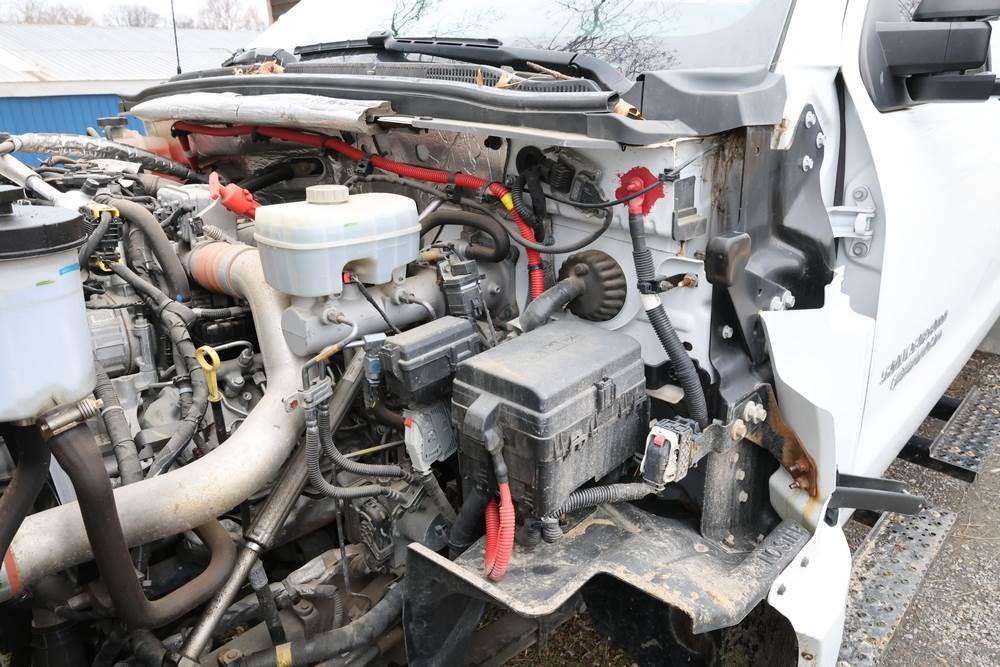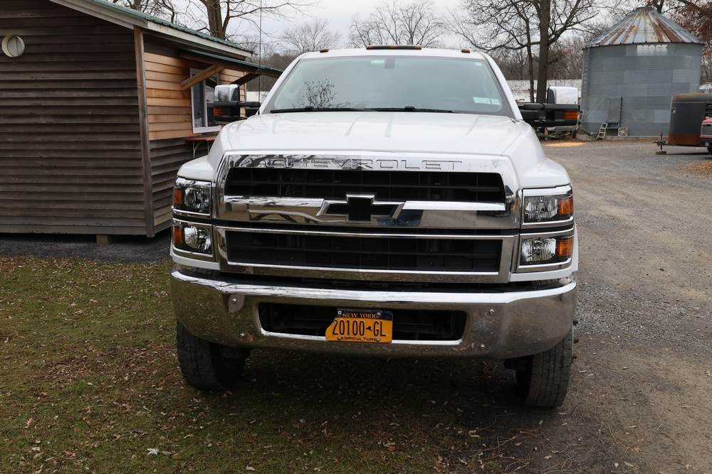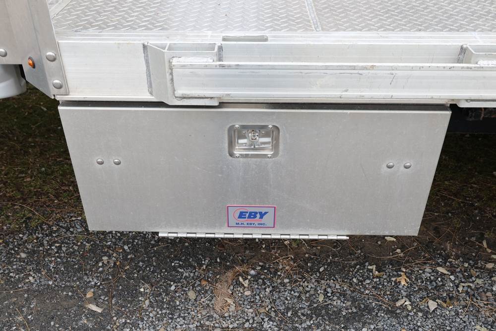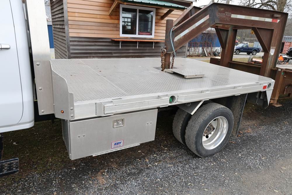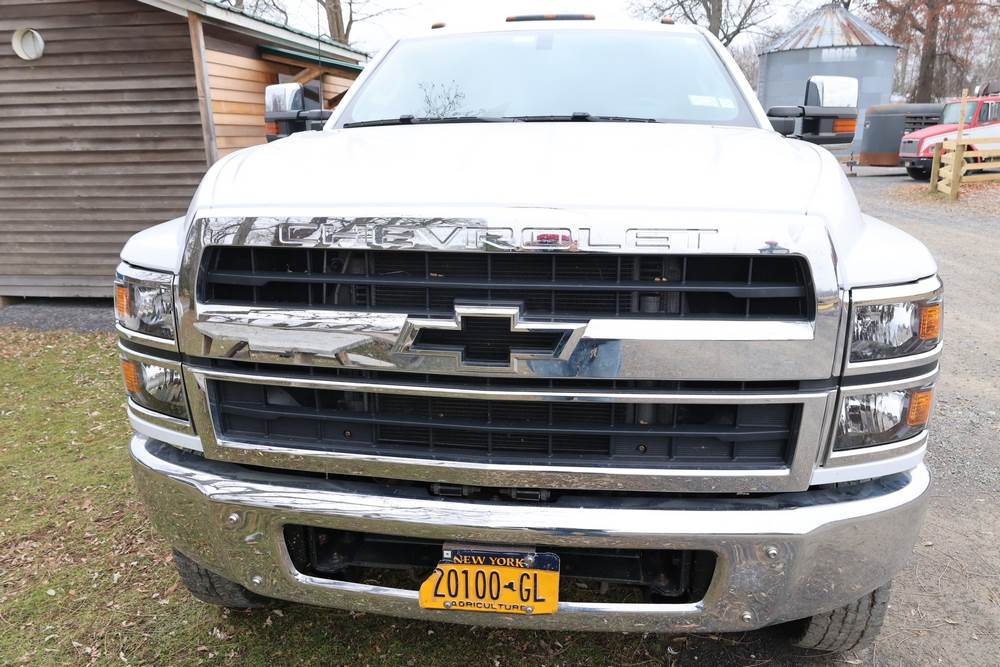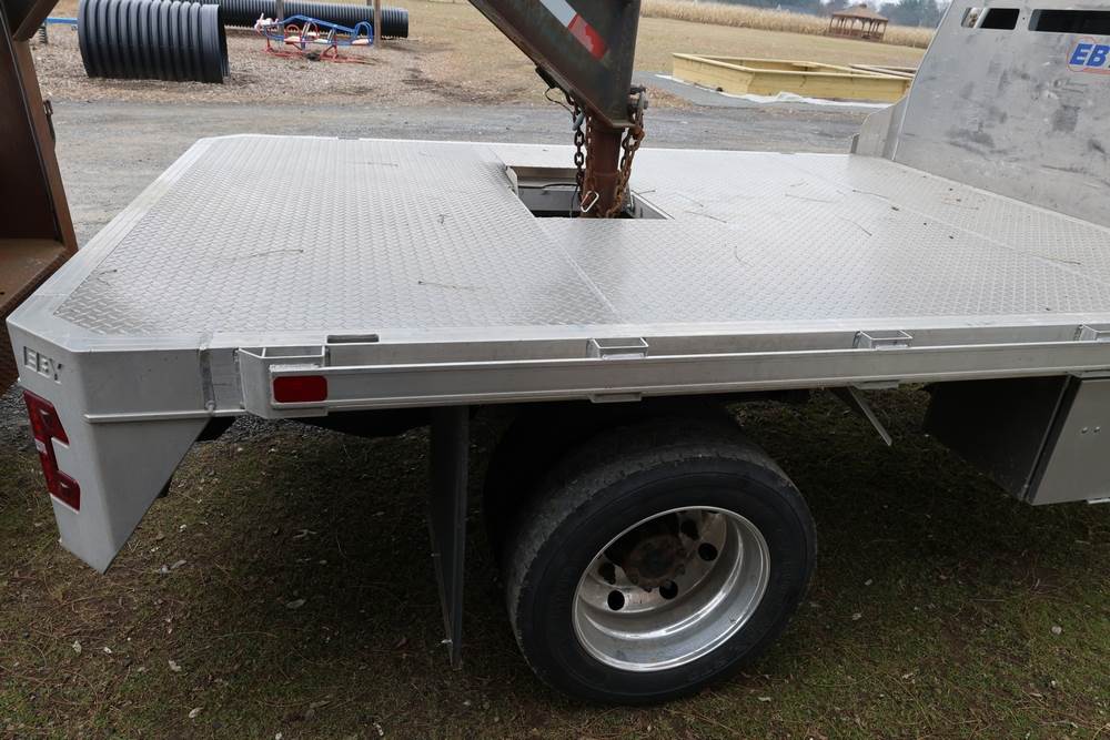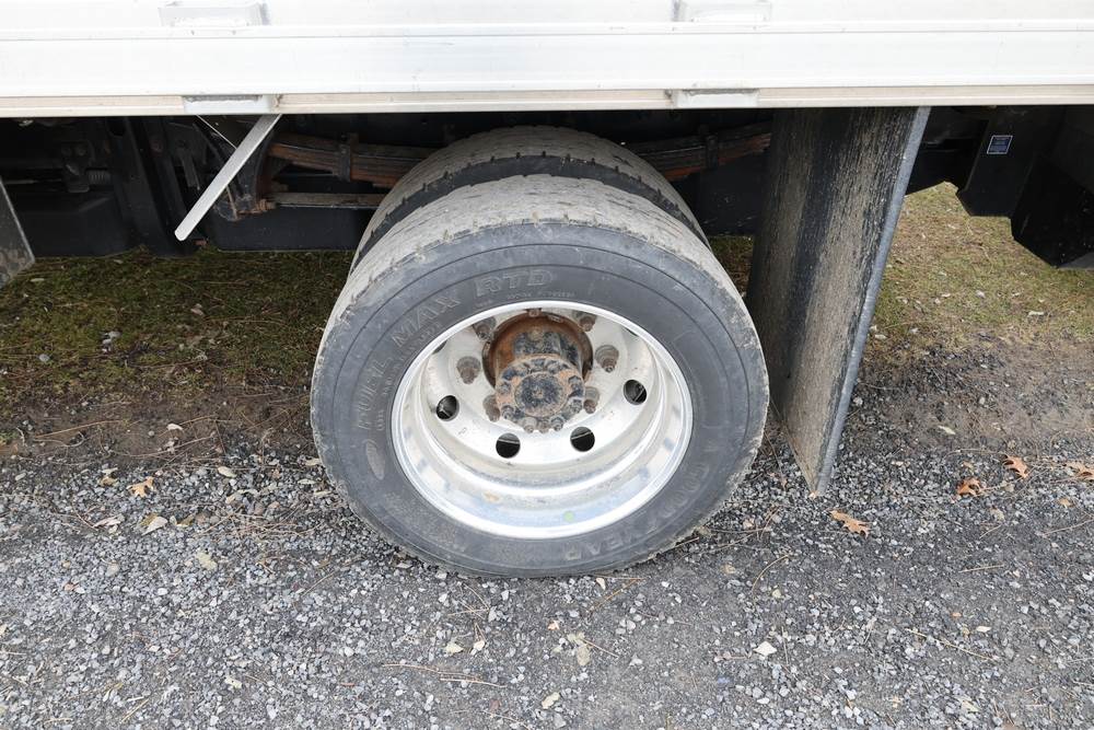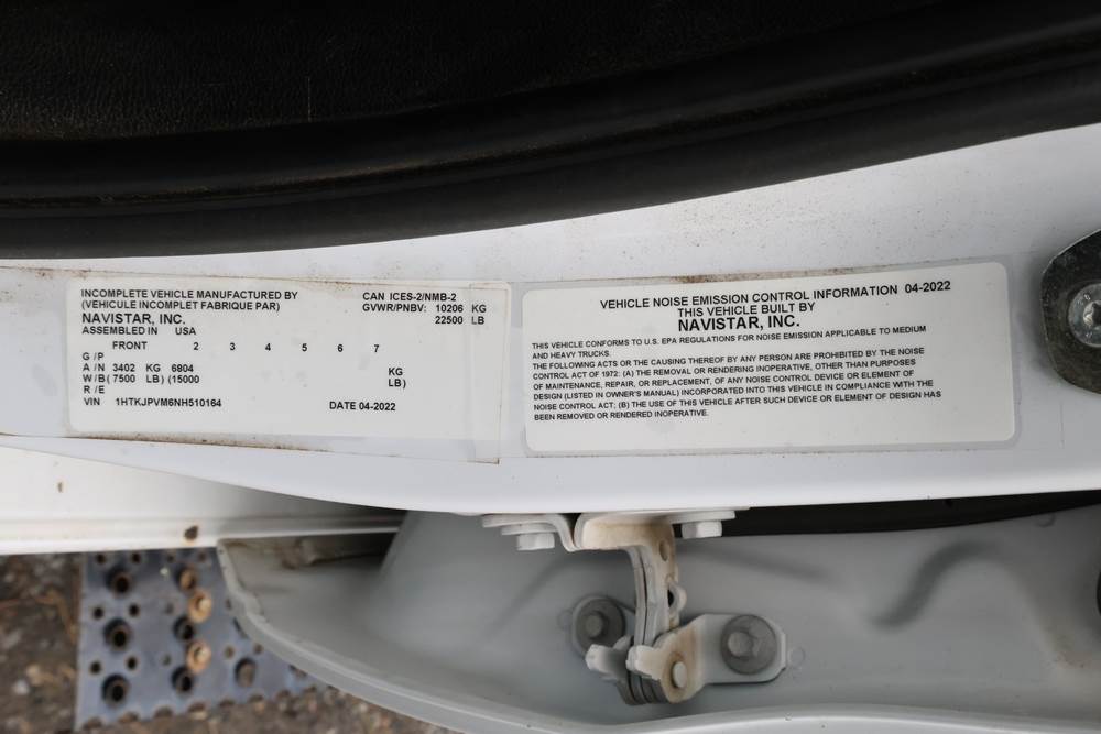 2022 International GM515 crew-cab flatbed truck. VIN: 1HTKJPVM6NH510164. Engine: 6.6L diesel, automatic transmission, 4WD. Odometer reading: 33617 miles. Features include dual rear wheels, aluminum Eby flatbed, running boards, touchscreen audio display. Runs and drives. Title and key available. NOTE: This item has a lien which will be satisfied upon payment for purchase in the auction. The vehicle(s) listed in this event will have the lien and title released upon payment directly to the secured creditor once paid for by the purchaser.