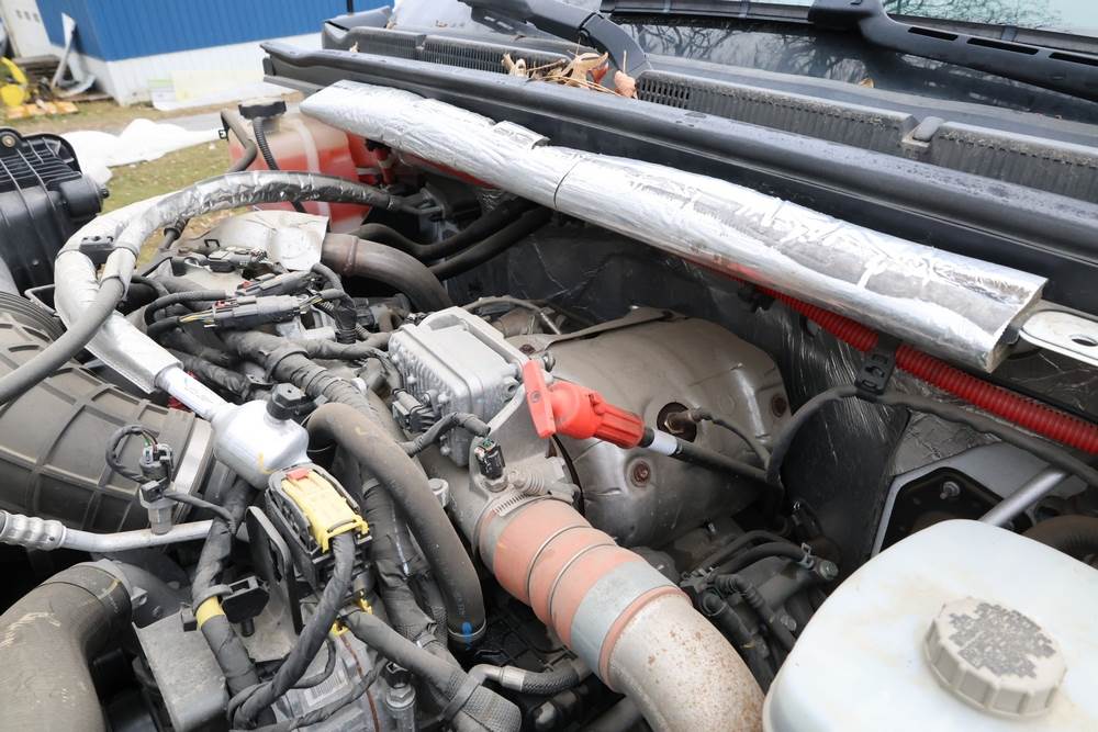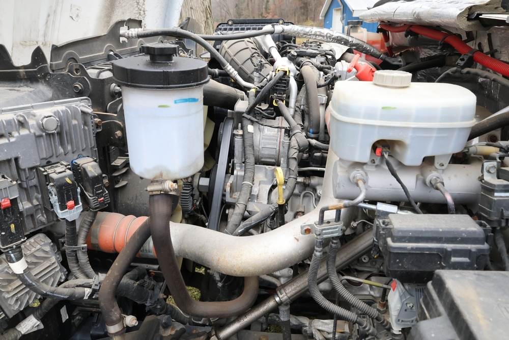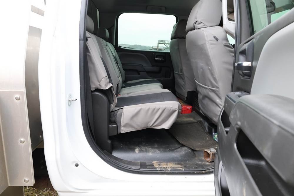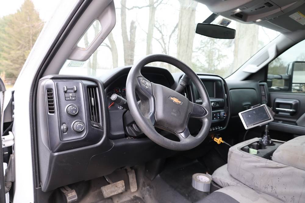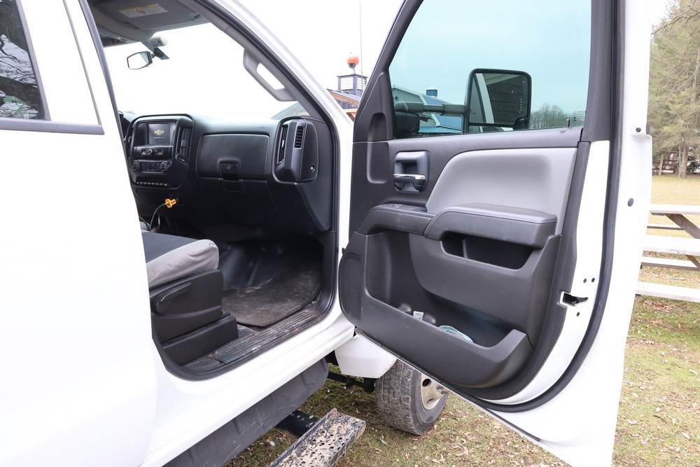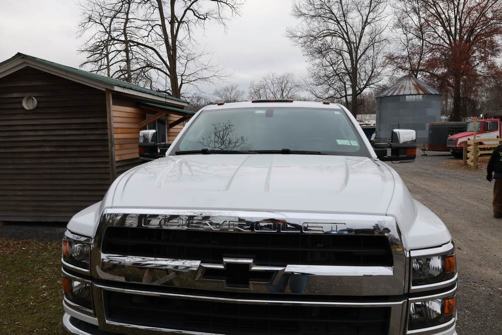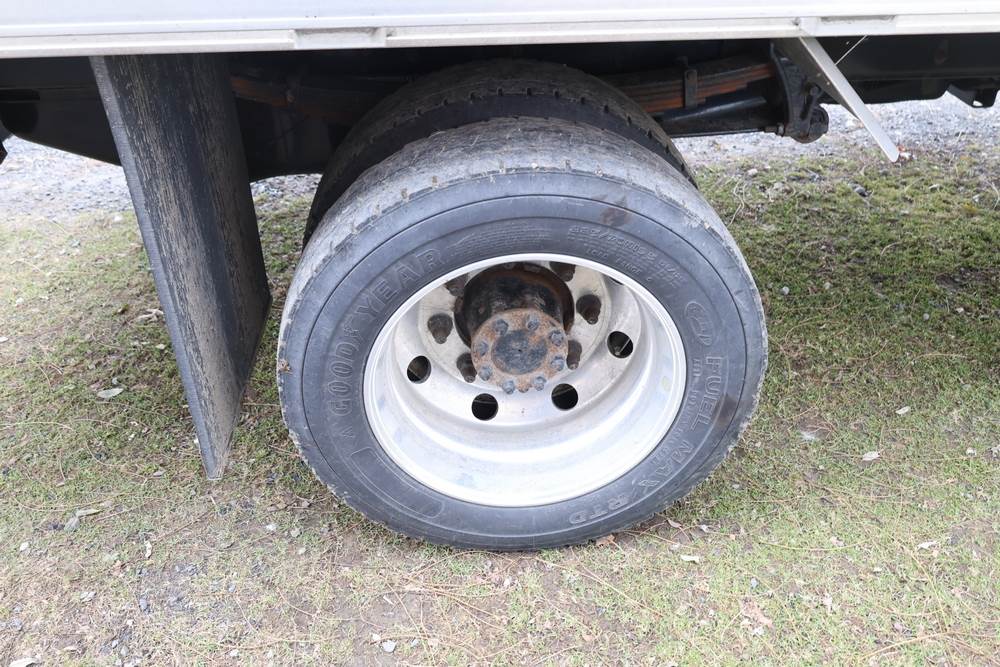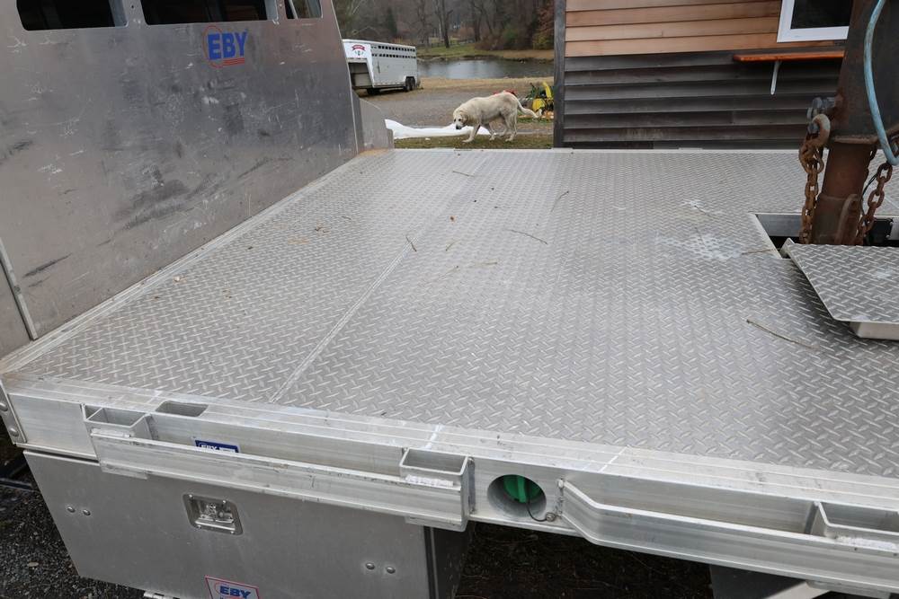 2022 International GM515 crew-cab flatbed truck. VIN: 1HTKJPVM6NH510164. Engine: 6.6L diesel, automatic transmission, 4WD. Odometer reading: 33617 miles. Features include dual rear wheels, aluminum Eby flatbed, running boards, touchscreen audio display. Runs and drives. Title and key available. NOTE: This item has a lien which will be satisfied upon payment for purchase in the auction. The vehicle(s) listed in this event will have the lien and title released upon payment directly to the secured creditor once paid for by the purchaser.