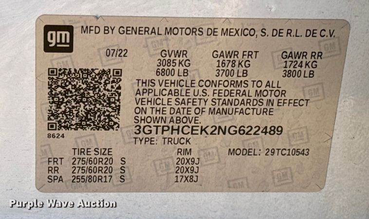 VIN: 3GTPHCEK2NG622489