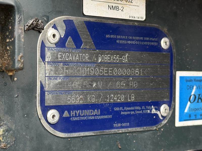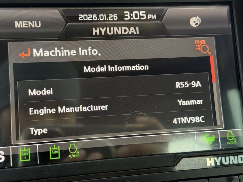 This 2022 Hyundai R55-9A tracked excavator is a compact excavator configured with a hydraulic thumb and clean up bucket, suitable for excavation, grading, and site work. It is powered by a Yanmar 4TNV98C diesel engine and operates on rubber tracks, with an operating mass of 5,632 kg (12,420 lb). The unit features dual joystick controls, a 7-inch LCD monitor, and an enclosed cab equipped with air conditioning and heat. A protective cage is installed for added operator protection. Additional equipment includes an AM/FM radio and 12V power input. With 120 operating hours, this excavator offers a compact footprint while accommodating a range of job site applications. This item is currently OFFSITE. You must register an appointment with our office to schedule an offsite viewing. Appointments must be made a minimum of one business day in advance (and as defined by the days that Repo.com is open for business) before your appointment can be scheduled and confirmed. We may, at our own discretion, instead opt to transport smaller items to Repo.com's main yard for viewing purposes. $89,810.00 plus $375 processing fee, $90,185.00 total payment obligation before taxes. Listing report, warranty, contract commitment cancellation fee, financing available on approved credit (some limitations and exceptions may apply). All above specifications and information is considered to be accurate but is not guaranteed and no opinion or advice is given as to whether this item should be purchased. We do not allow test drives due to theft, fraud, acts of vandalism and undetectable impaired driving. Instead we provide the following benefits: Complimentary Warranty (with options to extend), Limited Money Back Satisfaction Guarantee on Fully Completed Contracts, Contract Commitment Cancellation, and an Open-Ended Sell-Back Option. Ask seller for details or call to confirm listing availability.