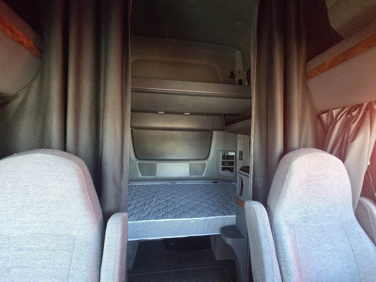 This 2022 International LT625 sleeper is equipped with a Cummins X15 14.9 L 450 HP engine with engine brake paired with an Eaton EEO 17F112C 12 speed automatic transmission and a Meritor 2.64 rear axle ratio. The truck uses a tandem axle configuration rated at 12,350 pounds on the front axle and 40,000 pounds on the rear axle with a 52,350 pound GVWR. It includes dual aluminum fuel tanks totaling 200 gallons, a horizontal exhaust, a steel frame, air ride suspension, and a 228 inch wheelbase. The unit is equipped with aluminum wheels and 275 80R22.5 tires along with an air slide fifth wheel. The 73 inch sleeper has dual bunks, gray interior, dual high back seats including an air ride passenger seat, dual power mirrors, operational air conditioning, and an AM FM Bluetooth radio. Additional features include heated mirrors, full fairings, and collision avoidance. Multiple units available.