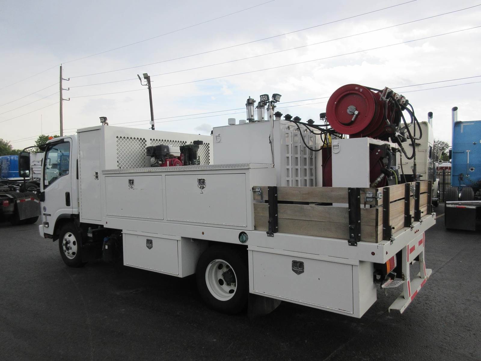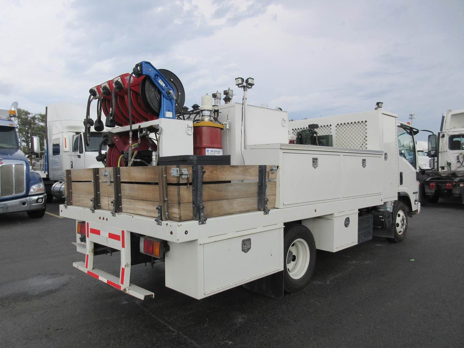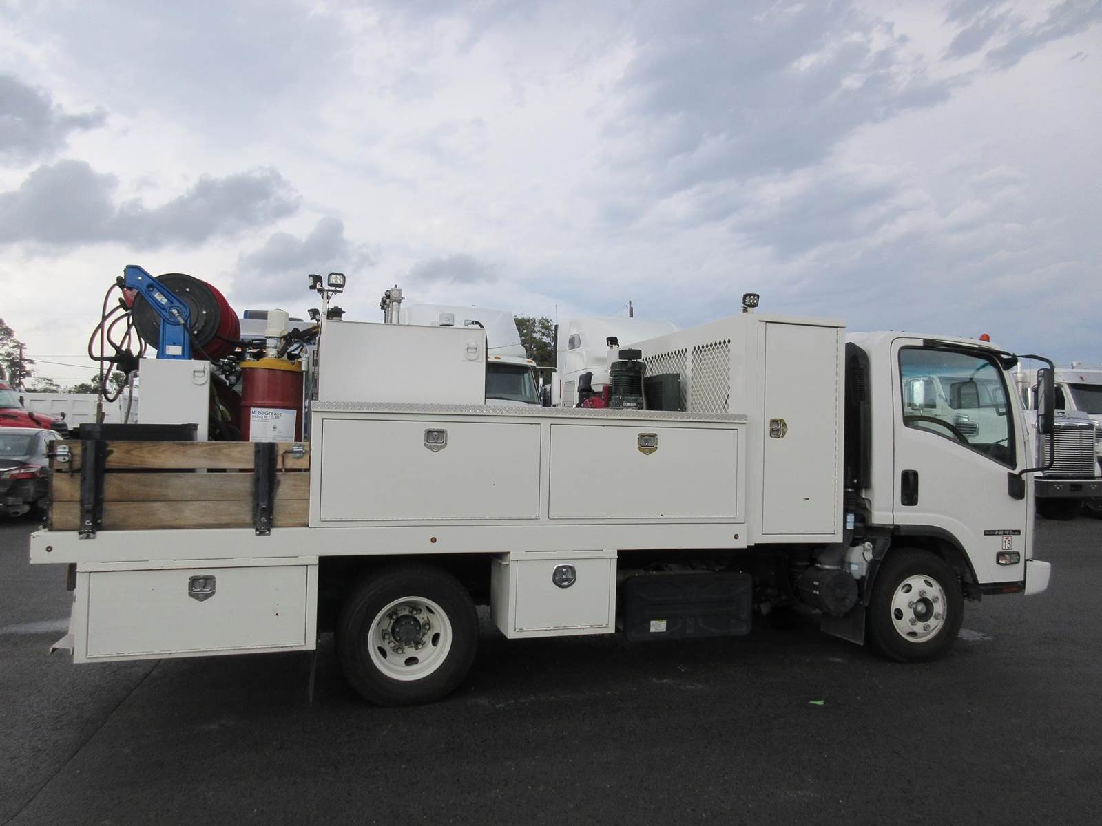 VERY CLEAN LOW MILE 2022 ISUZU NPR-HD!! ISUZU 4HK1 5.2 DIESEL MOTOR WITH 215HP! 6 SPEED AUTOMATIC AISIN TRANSMISSION! 4.3 REAR RATIO! 30 GAL FUEL TANK! GREAT RUBBER! GVWR 14,500LBS! EXTERIOR LIGHTING! GENERATOR WITH AIR COMPRESSOR! 9 STORAGE COMPARTMENTS! 4 OIL DRUMS, 6 HOSE REELS (OIL, AIR, GREASE)! GREAT TRUCK TO SERVICE ANY EQUIPMENT! NO PAINT OR BODY DAMAGE READY TO WORK!