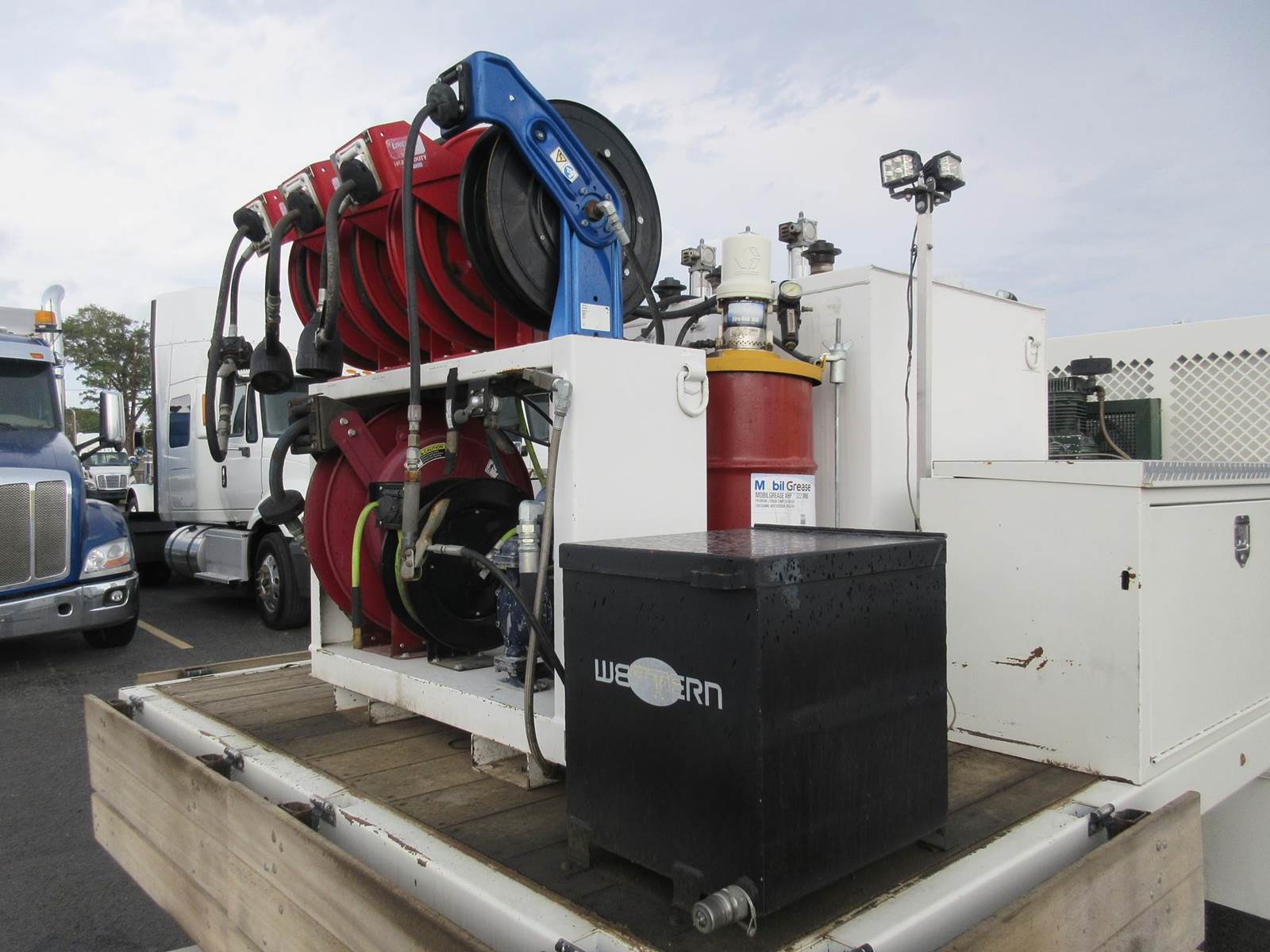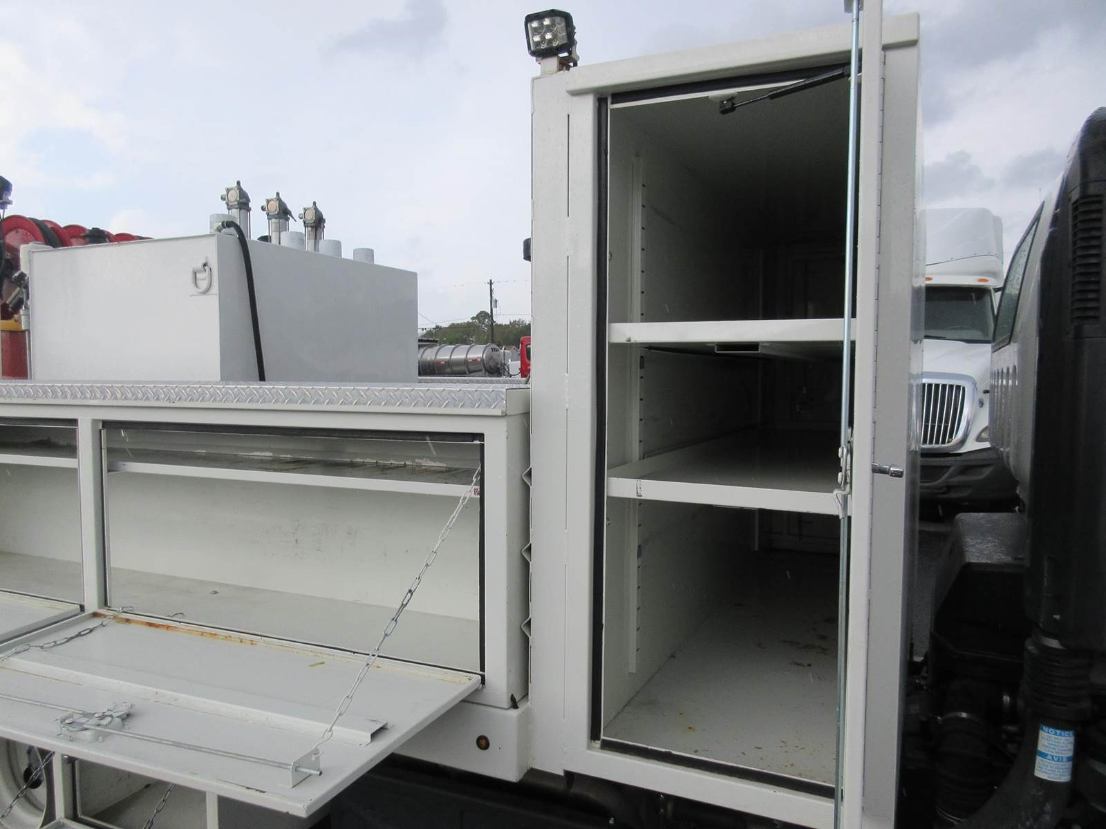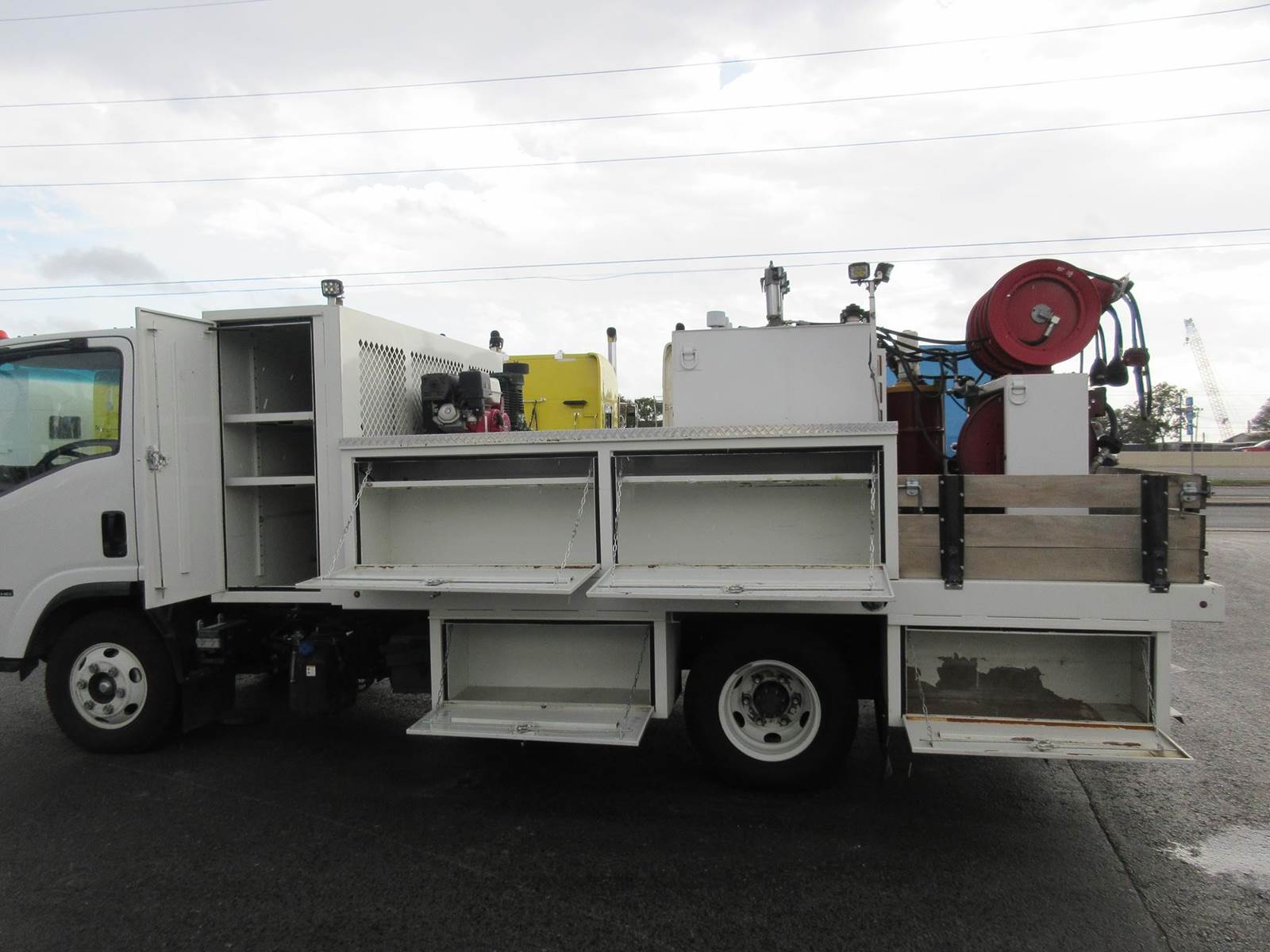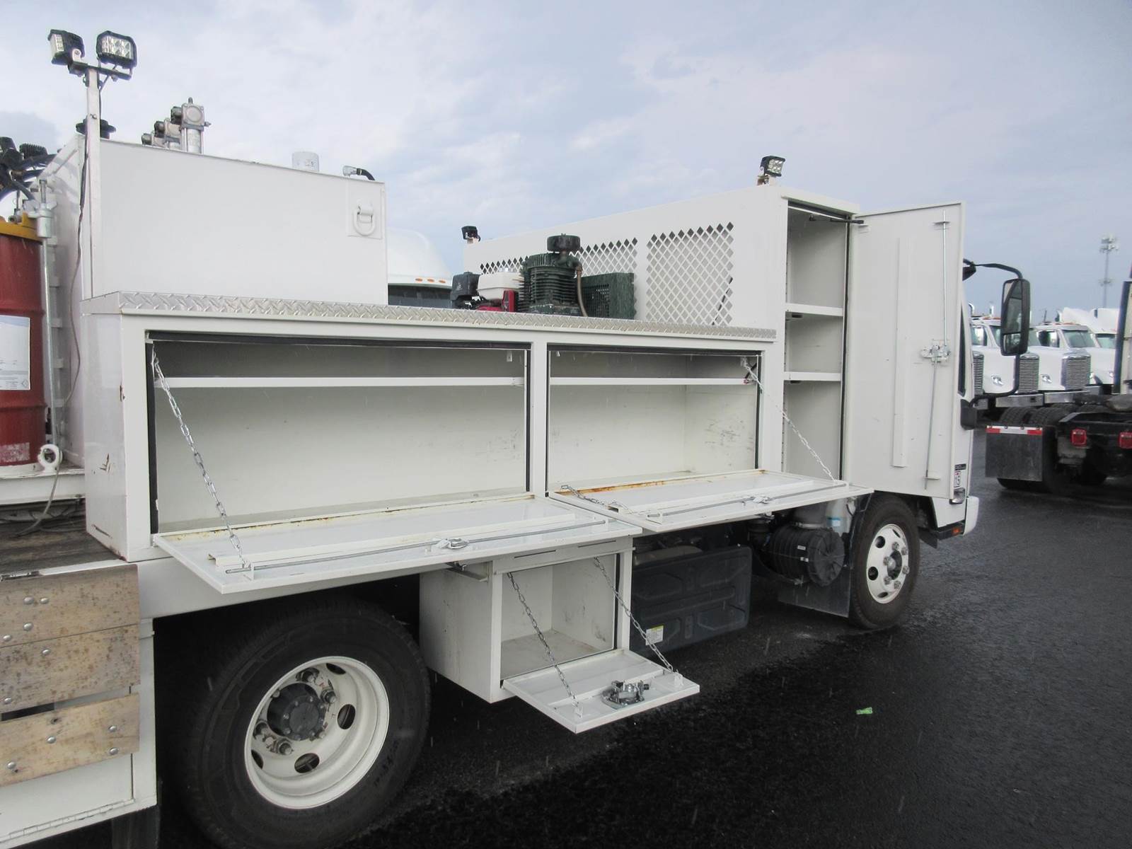 VERY CLEAN LOW MILE 2022 ISUZU NPR-HD!! ISUZU 4HK1 5.2 DIESEL MOTOR WITH 215HP! 6 SPEED AUTOMATIC AISIN TRANSMISSION! 4.3 REAR RATIO! 30 GAL FUEL TANK! GREAT RUBBER! GVWR 14,500LBS! EXTERIOR LIGHTING! GENERATOR WITH AIR COMPRESSOR! 9 STORAGE COMPARTMENTS! 4 OIL DRUMS, 6 HOSE REELS (OIL, AIR, GREASE)! GREAT TRUCK TO SERVICE ANY EQUIPMENT! NO PAINT OR BODY DAMAGE READY TO WORK!