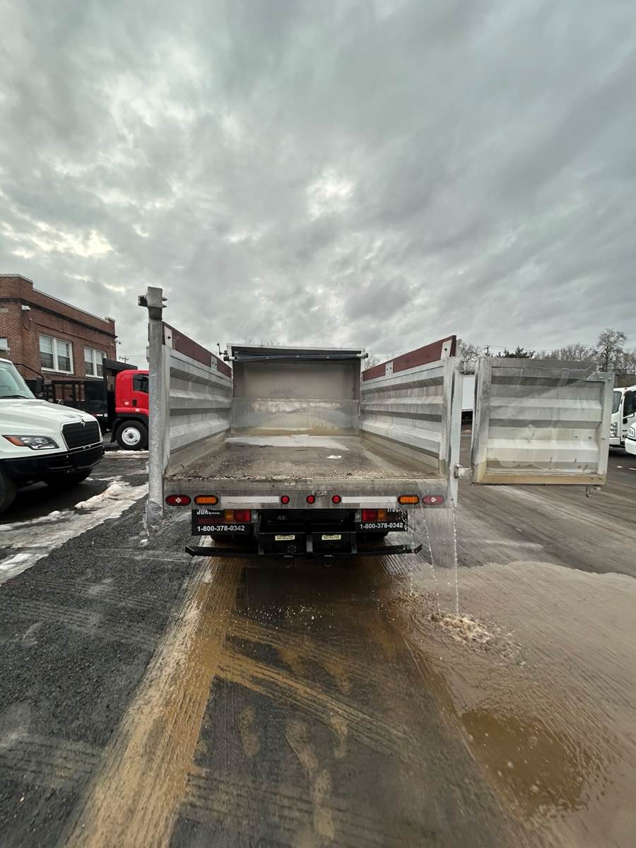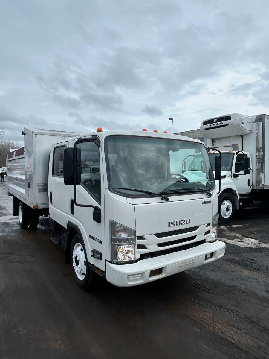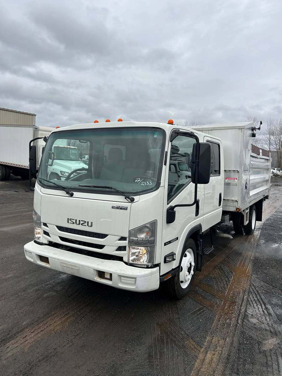 The 2022 Isuzu NQR DC 14' Dump Truck is a versatile, gasoline-powered hauler built for medium-duty hauling tasks with crew capacity. Powered by a GM 6.0L V8 gasoline engine, it delivers 297 horsepower and 372 lb-ft of torque, paired with a GM 6-speed automatic transmission with double overdrive for smooth, efficient performance. With a 19,500 lbs. gross vehicle weight rating (GVWR), this Class 5 truck features a 14-foot dump bed, ideal for landscaping, construction, or material transport. The dual cab seats up to seven, making it perfect for work crews, while its low-cab-forward design ensures excellent visibility and a tight turning radius for navigating urban streets or job sites. The cab offers air conditioning, power windows, and an ergonomic layout for long shifts. Durable and practical, this 2022 Isuzu NQR DC is a top choice for businesses needing a reliable dump truck.