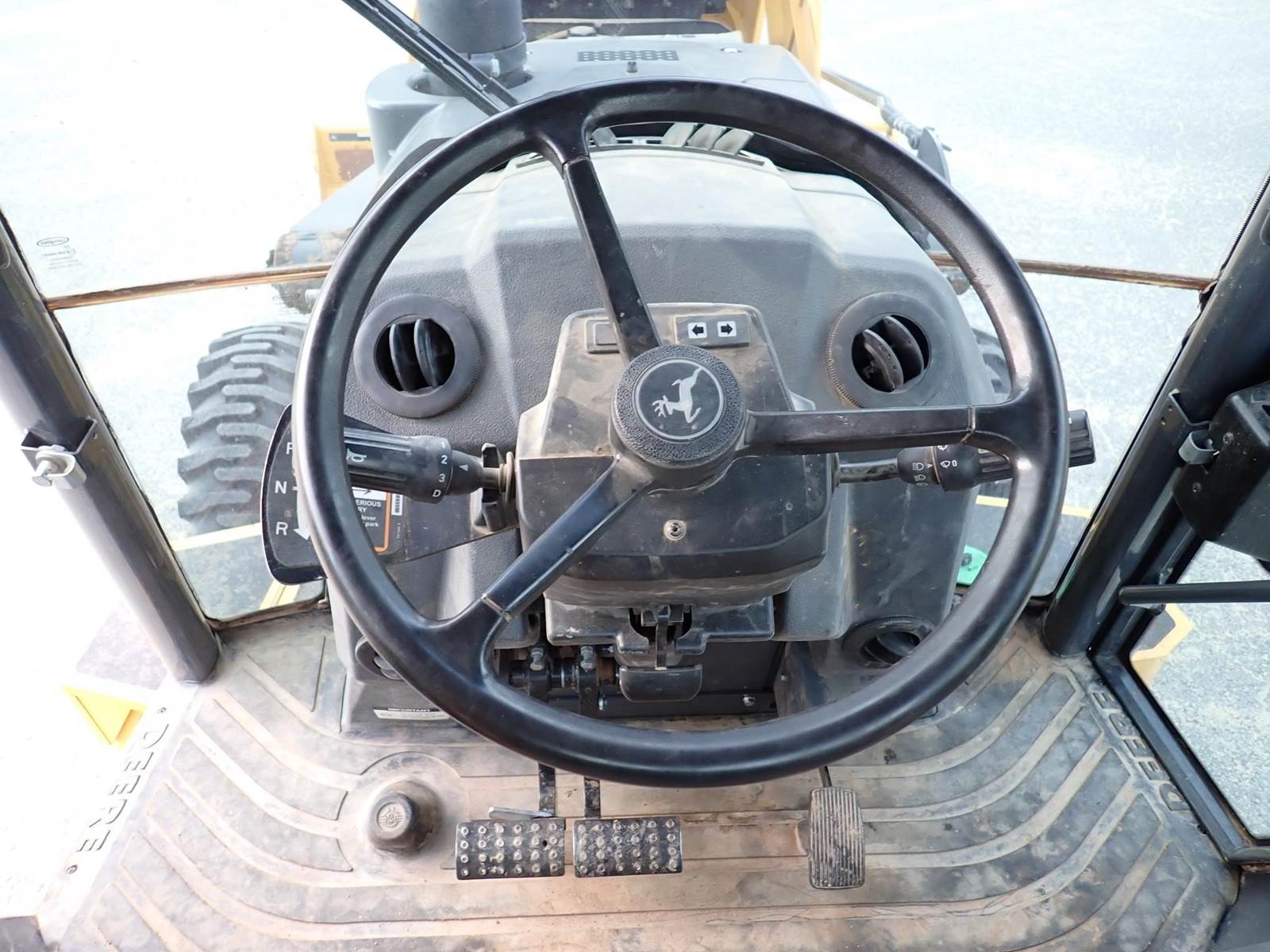 4x4, x-hoe, cab w/ a/c, front hyd coupler, power shift, ride control, pilot controls, 24" digging bucket, rear manual coupler