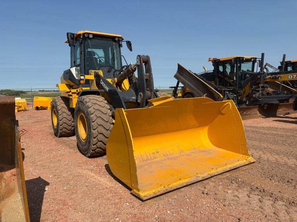 JD POWERTECH ENGINE | STANDARD WHEEL LOADER | 5 SP TRANSMISSION W/ LOCK UP | 140 AMP ALTERNATOR | FLAT BLACK CURVED STACK | AIR INTAKE WITH PRECLEANER | AUTOMATIC REVERSING HYD FAN | FUEL TANK W STD FILTER | JDLINK | PREMIUM CAB | 7 INCH DISPLAY MONITOR | HYDRAU XR HYDRAULIC FLUID | STANDARD Z-BAR | STEERING WHEEL ONLY | PREMIUM SEAT | JOYSTICK CONTROLS | THREE FUNCTION HYDRAULICS | RIDE CONTROL | ENGLISH DECALS & MANUALS | 15 AMP CONVERTER | NO PAYLOAD SCALE NO COUNTER | AXLE,W/ HYD FRONT & REAR | AUTOMATIC DIFFERENTIAL LOCK | 20.5R25 L3 1STAR MI-3PC RADI | STANDARD FRONT FENDERS | LEFT SIDE STEPS ONLY | NO FORK FRAME | NO TINES | PREMIUM LED LIGHT PACKAGE | REAR HITCH & COUNTERWEIGHT | REAR CAMERA ONLY | LEFT BEACON BRACKET ONLY | EXTERIOR MIRRORS-HEAT&POWER | RADIO - PREMIUM | AC CHARGE | PIN-ON ATTCH READY PINS ONLY | NO BUCKET EDGE OR TEETH | NO BUCKET | ENGINE BLOCK HEATER | ENVIRONTMENTAL DRAIN & PORTS | ENGINE COMPARTMENT LIGHT | GUARDS-TRANSMISSION & BOTTOM | DISCOUNT | MKT DEV FUND