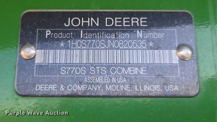 2022 John Deere S770 STS combine