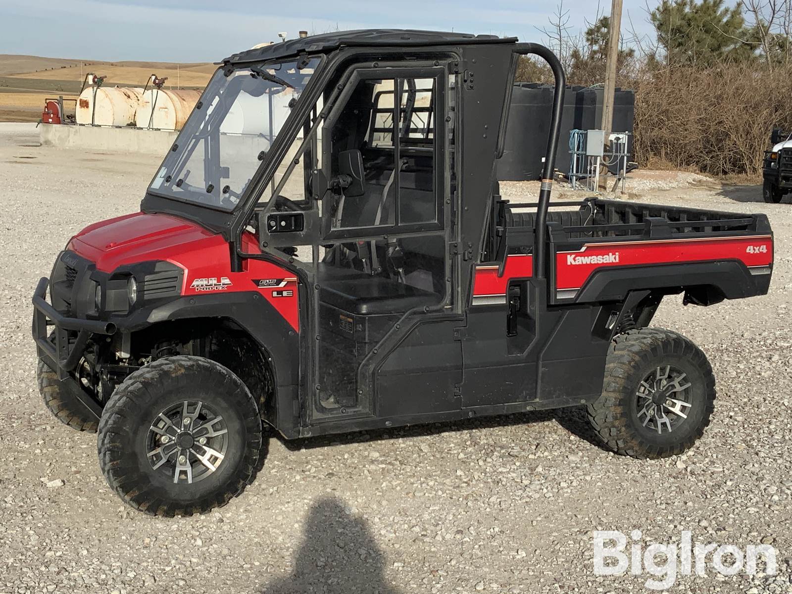 2022 Kawasaki Mule PRO-FX 820 4x4 UTV, 930 hrs showing, 10,029 miles showing, Title Will Be Marked Miles Exempt, 812cc 3-cylinder 4 stroke Engine, CVT Automatic Transmission, Electrically Selectable 2WD/4WD/dual-mode rear differential with differential lock, Independent Front & Rear Suspension, Electric Power Steering, Tilt Steering, Full Enclosed Cab with Heat, 26x9.00R12 Front Tires, 26x11.00R12 Rear Tires, (2) 12V Power Outlets, Windshield Wiper, 3 Person Bench Seat, 55” Manual Dump Bed, Rear Hitch, VIN: JKBAFSG11NB507388