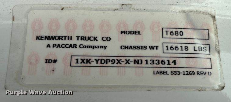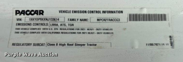 VIN: 1XKYDP9XXNJ133614