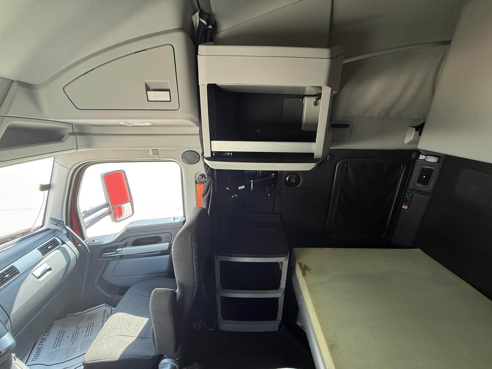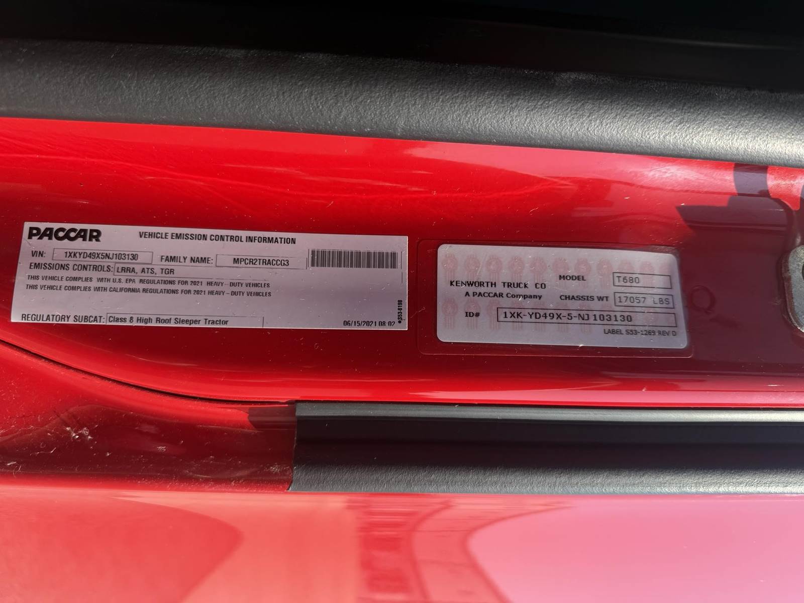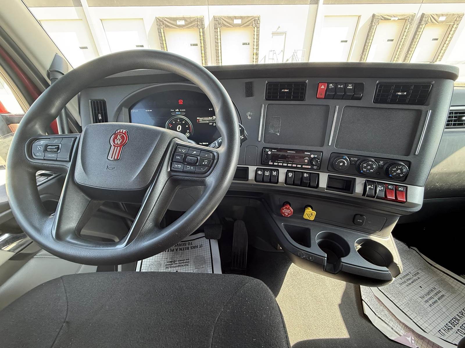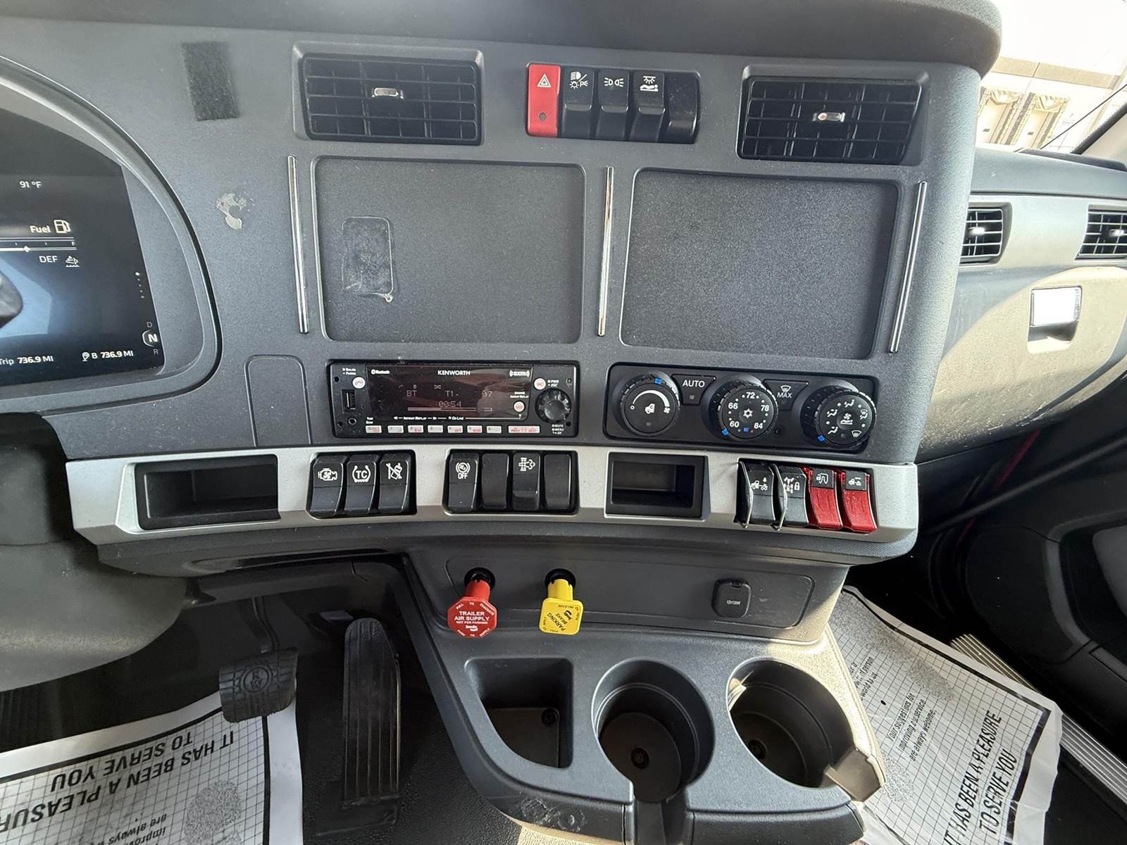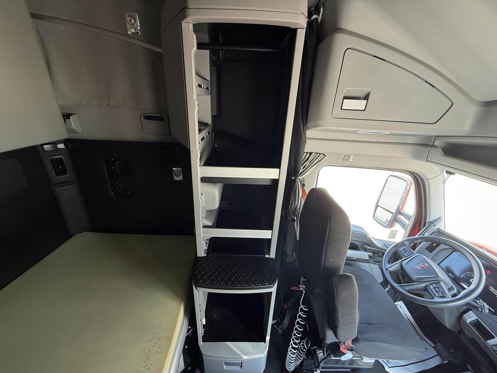 This T680 is equipped with a 76 in raised roof sleeper, with a double bunk, built in storage cabinets and modern features, passenger-side sleeper window and bunk doors, cloth upholstered air ride seats, Espar bunk heater, Smart storage layout, power locks, power steering, and AM/FM radio, Collision Mitigation System, Engine brake, Hood mirrors, Sliding 5th wheel, Full side fairings, 4 battery system, and so much more!!