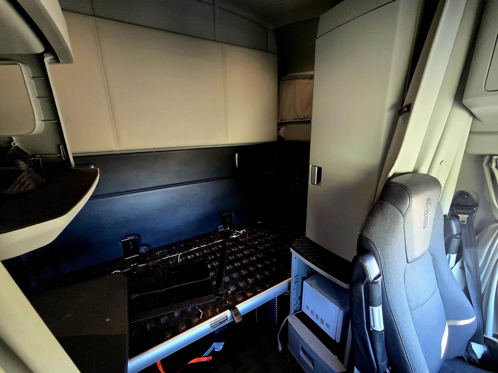The raised roof sleeper offers two beds, ample cabinet storage, and an electric Auxiliary Power Unit (APU) for an energy-efficient climate-controlled rest environment. Drivers will appreciate left-hand drive, excellent A/C, power locks, and comfortable cloth upholstery—making long hauls more enjoyable.