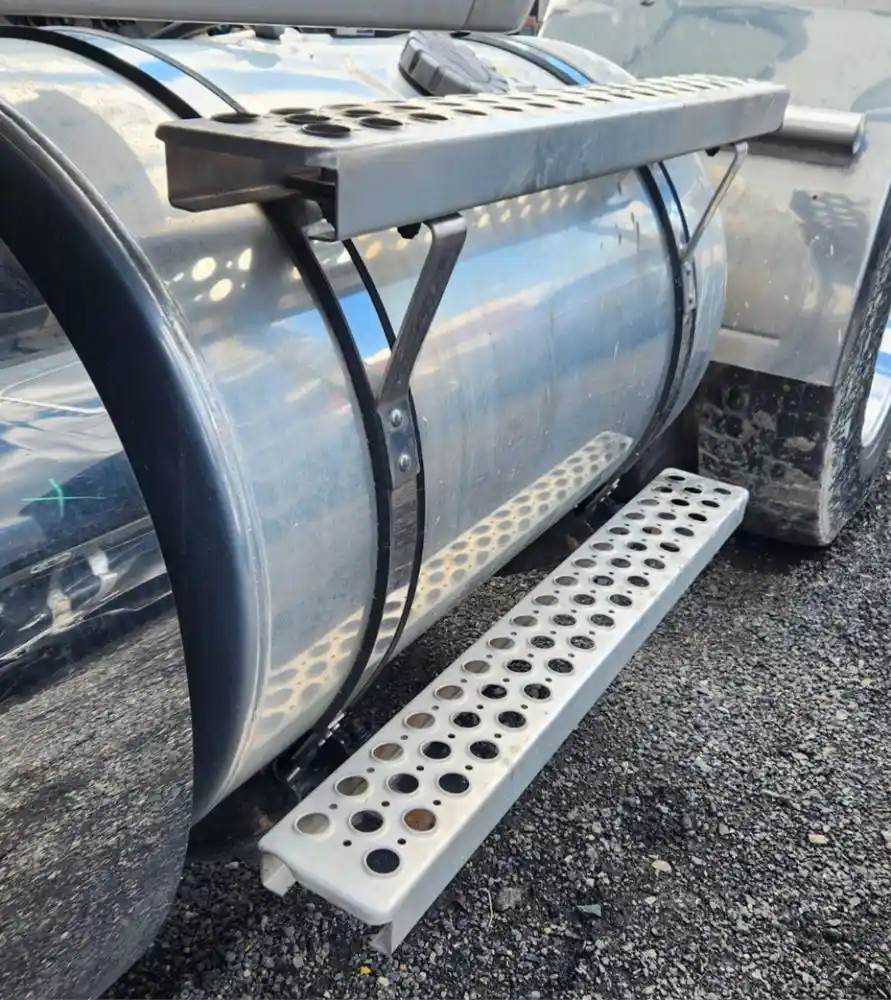 (Used) 2022 Kenworth T880, FUEL TANK STEPS- Side: Driver Left Side, Material: Aluminum with Steel, Steps: 2, Dimensions: L=35 ½", W=5", Reference images for condition, For more information about this item, give us a call. We ship Worldwide! (CRG HEAVY TRUCK PARTS) 929 W PULASKI HWY ELKTON, MD 21921, Capacity: 75 Gallons, Dimensions: L=35 ½", W=5",, Material: Aluminum, Shape: Round