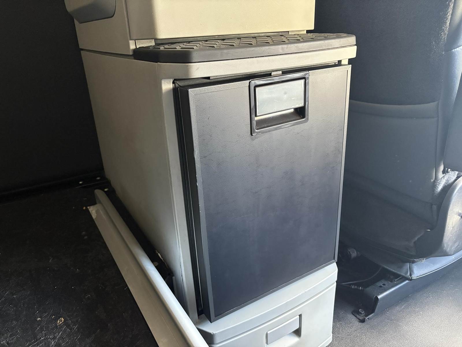The spacious 76″ mid-roof sleeper includes leather seating, refrigerator, inverter, bunk heater, digital dash, and cabin storage—all in excellent condition.