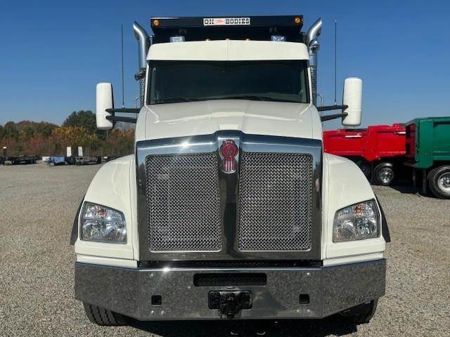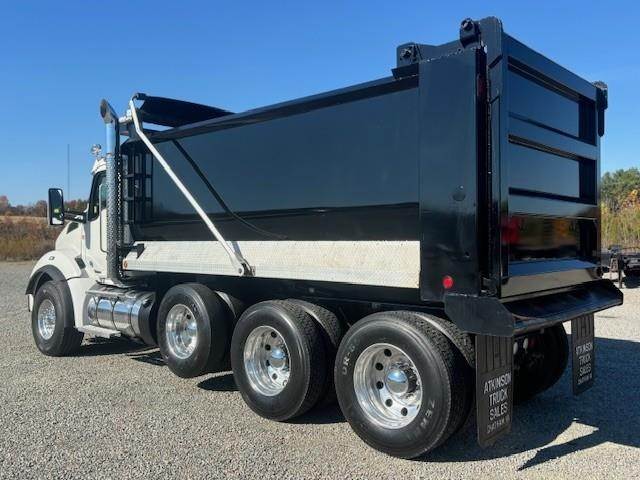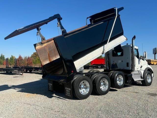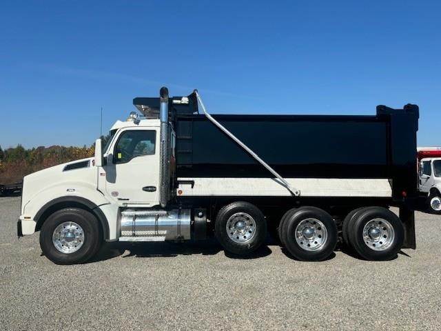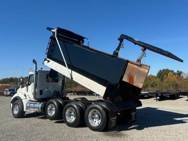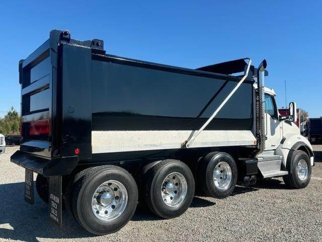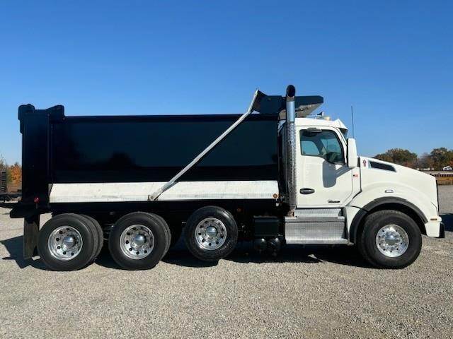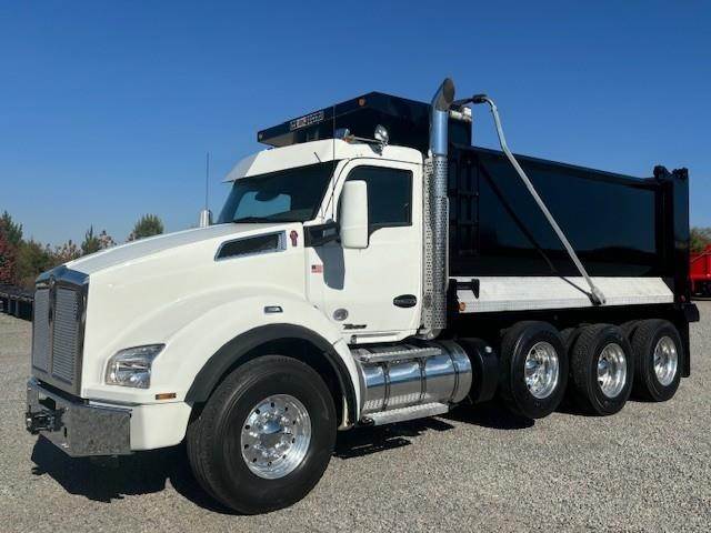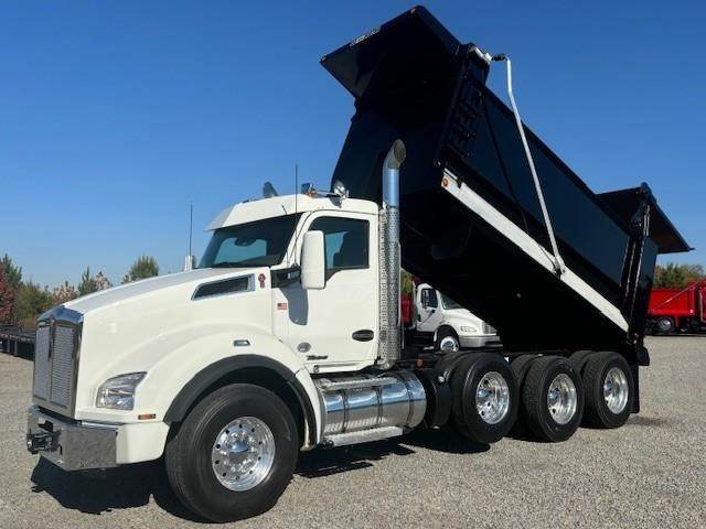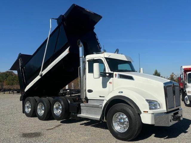 2022 Kenworth T880 --- Tri Axle, X15 Cummins 500 HP, Eaton-Fuller ULTRASHIFT 10 Speed, 4.10 Ratio, 20,000 Front Axle, 46,000 Rear Axle, 216" Wheelbase, 20' 2" Bridge, Chalmers, Double Frame, 3 Stage Engine Brake, Air Brake, Full Locking Rears, 16' HARDOX STEEL OX Dump Body, 60" Sides, High Lift Gate, Air Gate, Electric Tarp, All Aluminum, Dual Stacks, Aluminum Fuel Tank, Daylite Doors, Air Ride Cab, Dual High Back Seats, High Level Interior, Heated Mirrors, Cruise Control, Tilt & Telescopic Steering Wheel, AM/FM, Power Windows, P/L, P/S, AC.