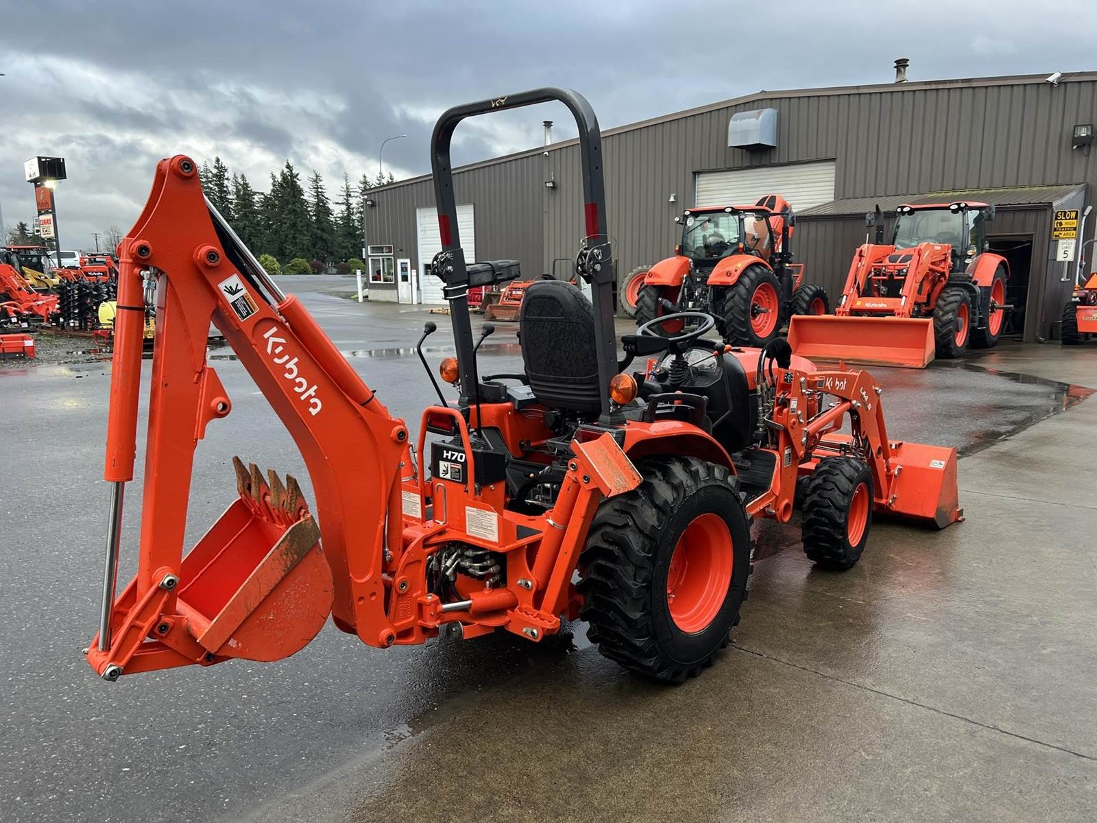 2022 KUBOTA B2601HSD-1 Compact Tractor - Kubota diesel engine, three range hydrostatic transmission, LA435 loader with pin-on bucket, BH70 backhoe, rear and mid PTO, rear 3Pt. and two-post foldable ROPS. Powertrain warranty until February 2028!