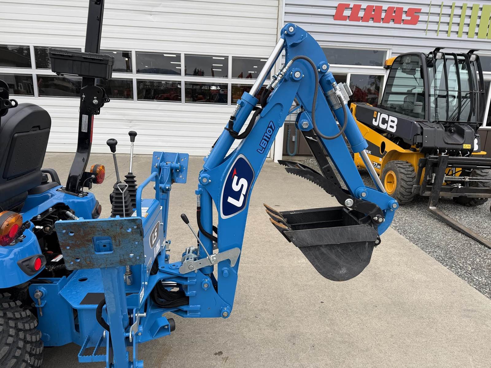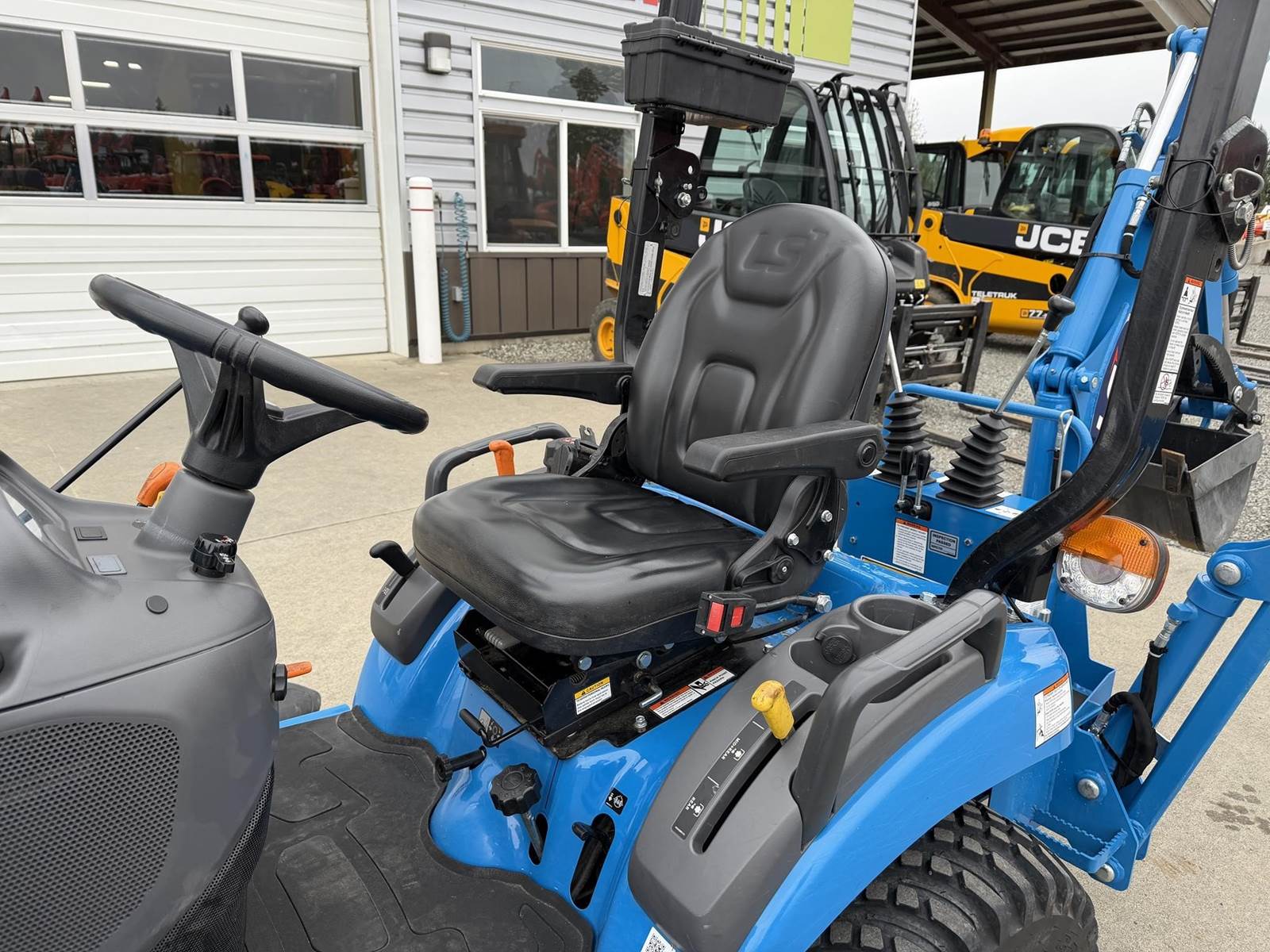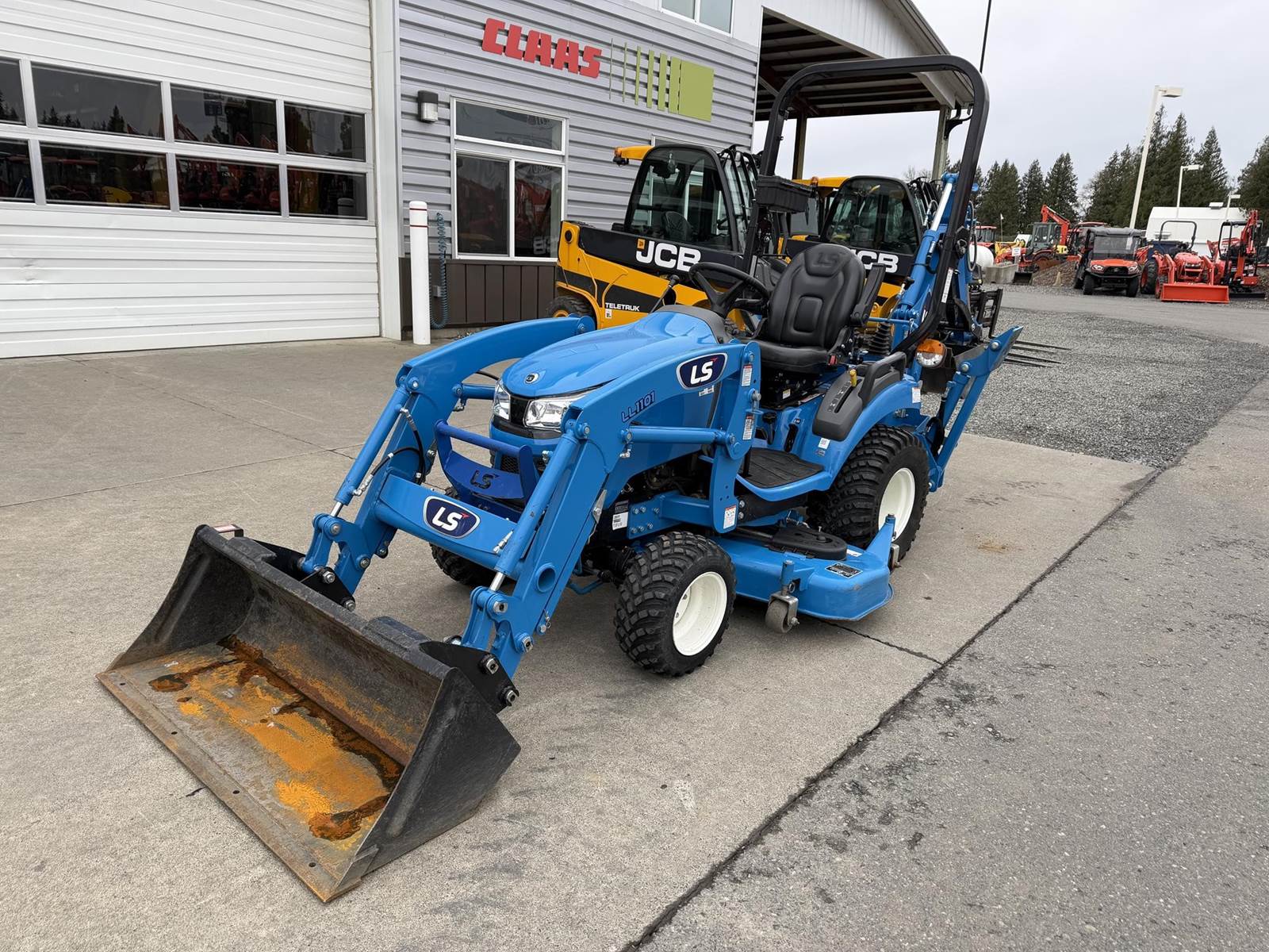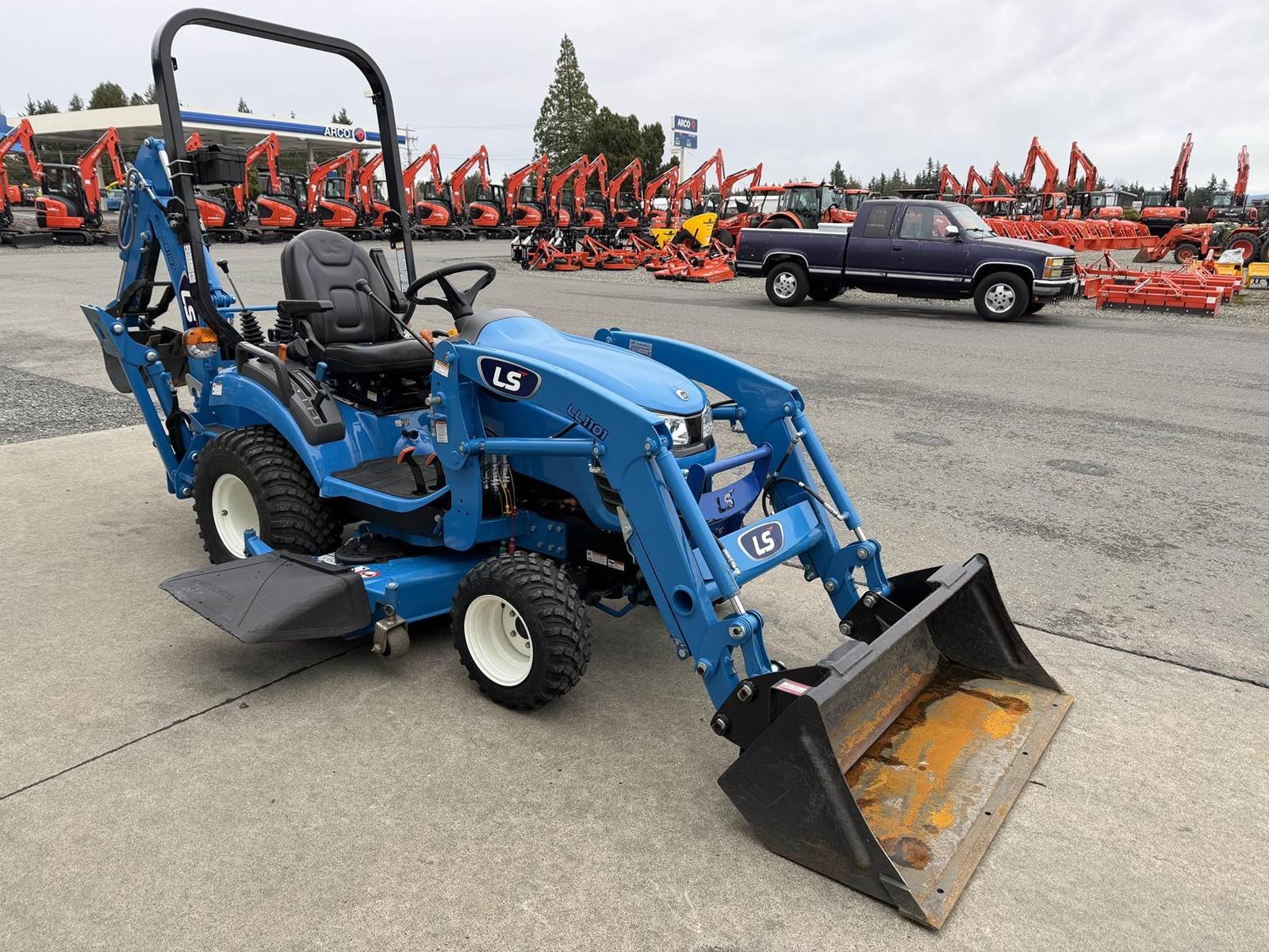 2022 LS MT125 Sub-Compact Tractor - Yanmar diesel engine, two-speed hydrostatic transmission, LL1101 loader with pin-on bucket, LM1160 mid-mount mower, LB1107 backhoe with trenching bucket and mechanical thumb, 4WD, rear 3Pt. linkage, mid and rear PTO and two-post foldable ROPS. Just 172 hours!