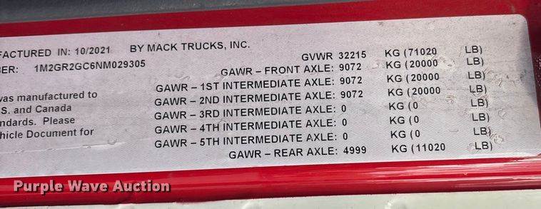 Lift axle GAWR: 11,020 lbs