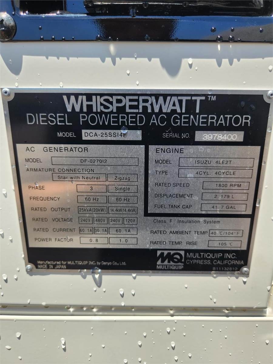 2022 Multiquip DCA25SSI4F Generator