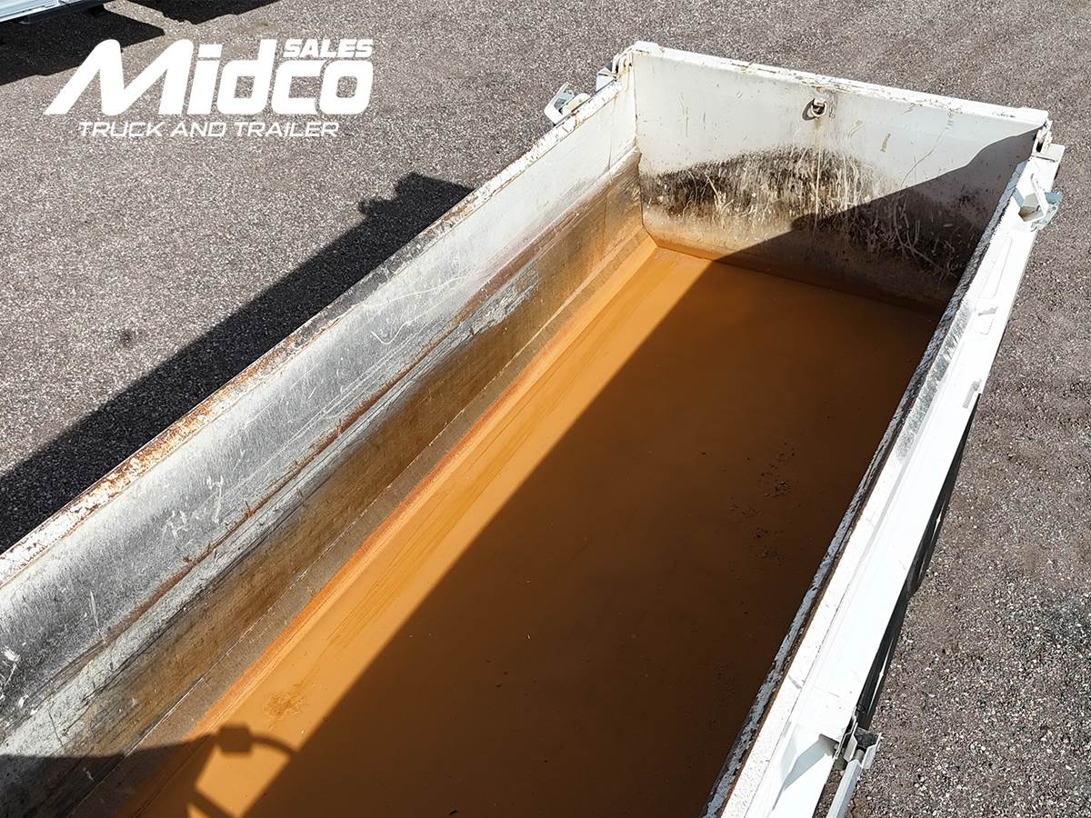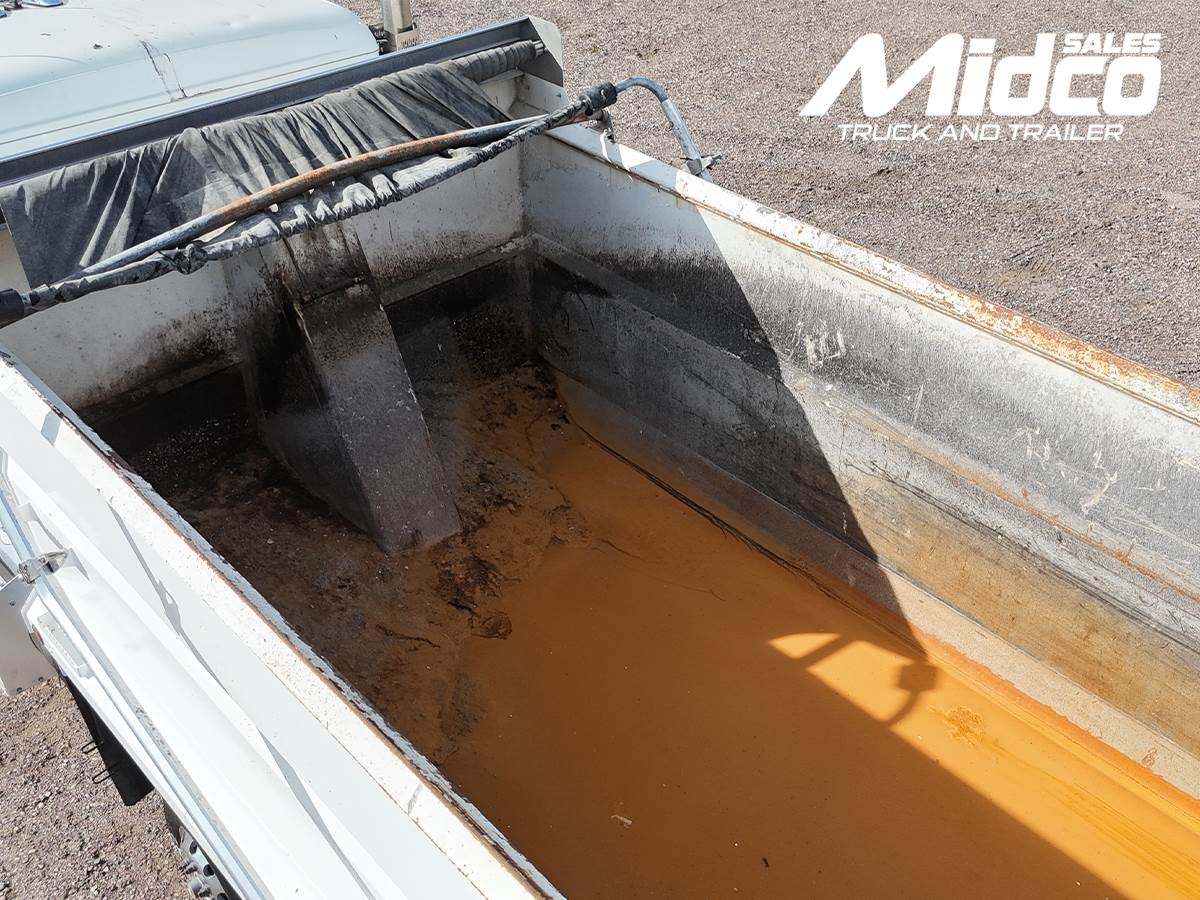 This truck is equipped with a rugged K&H dump body, built to handle demanding workloads while maintaining durability and performance.