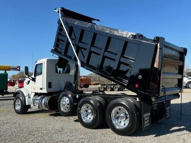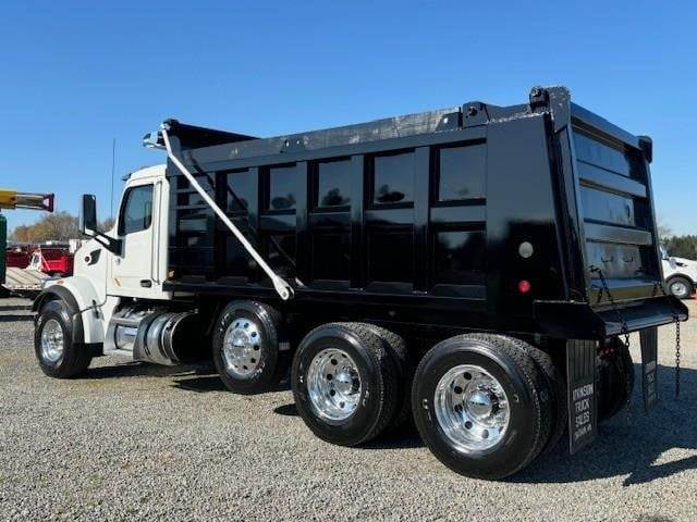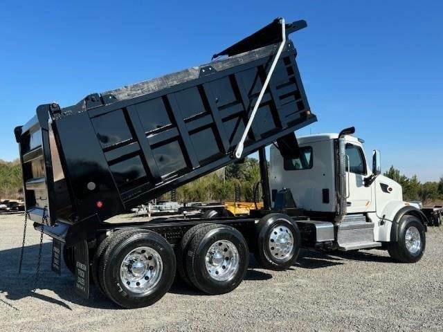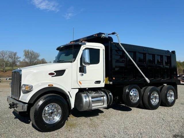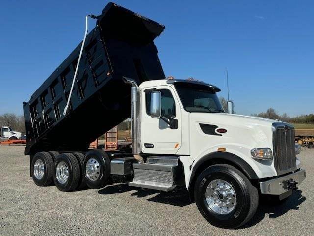 2022 Peterbilt 567 --- Tri Axle, X15 Cummins 485 HP, Allison Automatic 6 Speed, 4.56 Ratio, 20,000 Front Axle, 46,000 Rear Axle, 232" Wheelbase, 21' 6" Bridge, Hendrickson Haulmaax, 3 Stage Engine Brake, Air Brake, Axle & Differential, Pintle Hitch, 16' Steel OX Dump Body, 54" Sides, Air Gate, Electric Tarp, 1 Steerable Lift Axle, All Aluminum, Single Stack, Aluminum Fuel Tank, Air Ride Cab, Air Ride Seats, High Level Interior, Heated Mirrors, Cruise Control, Tilt & Telescopic Steering Wheel, AM/FM, Power Windows, P/L, P/S, AC.