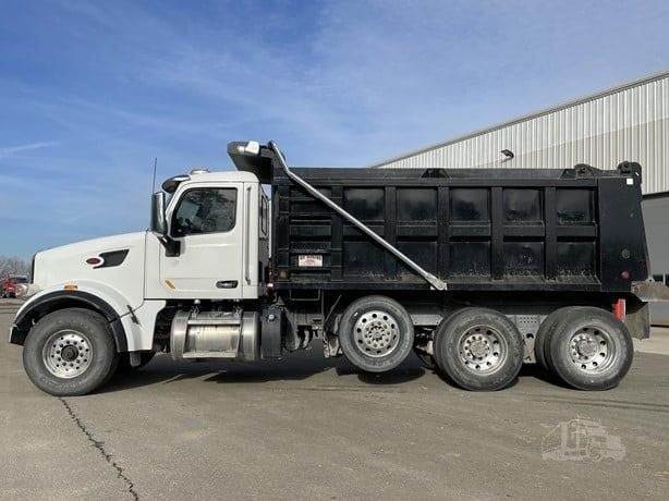 2022 Peterbilt 567 --- Tri Axle, X15 Cummins 500 HP, Allison Automatic 6 Speed, 4.56 Ratio, 20,000 Front Axle, 46,000 Rear Axle, 232" Wheelbase, 21' 6" Bridge, Hendrickson Haulmaax, Thick Frame, 3 Stage Engine Brake, Axle & Differential, 16' Steel OX Dump Body, 54" Sides, High Lift Gate, Air Gate, Electric Tarp, 1 Steerable Lift Axle, All Aluminum, Engine Heater Plug, Single Stack, Aluminum Fuel Tank, Daylite Doors, Air Ride Cab, Dual High Back Seats, High Level Interior, Heated Mirrors, Cruise Control, Tilt & Telescopic Steering Wheel, AM/FM, Power Windows, P/L, P/S, AC, Pintle Hitch Plate with 4 & 7 Prong Plug, Navigation, Bluetooth, Power Mirrors, Strobe Lights