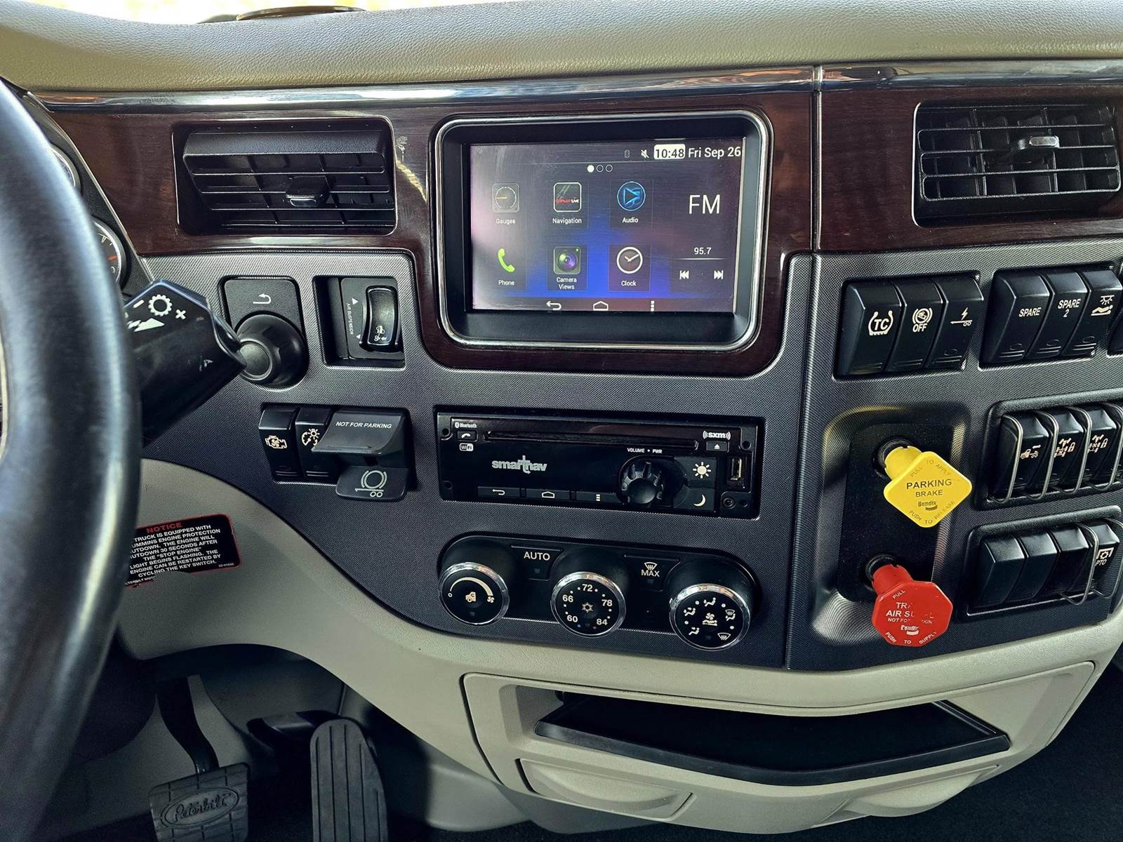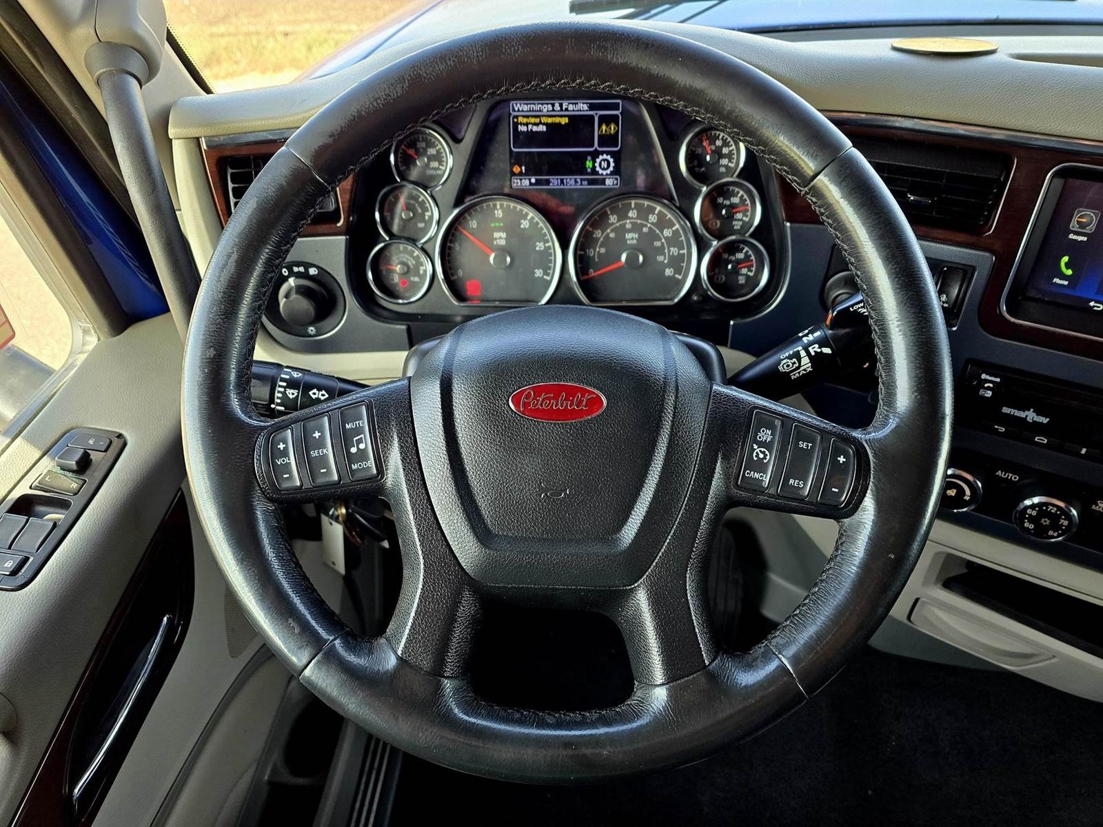 ONLY 291k MILES! Equipped with a 565hp Cummins X15, Eaton 18-Speed Automatic Transmission, 80” Mid Roof Sleeper, 48” Air Slide 5th Wheel, 260” Wheelbase, 3.91 Ratio, 77,999 lb GVWR, Double Frame, Set Front Axle, Chrome Bumper, Chrome Visor, Dual Stacks, Exposed Polished Aluminum Tanks, Escape Hatch Door, Polished Aluminum Wheels, Deep Rubber, Chrome Side Mirrors (Heated), Dual Air Ride Leather Seats, Woodgrain Trim, Refrigerator, 190 Gallon Fuel Capacity, Full Lockers, In-Dash Navigation, Smart Wheel Controls, Bluetooth Radio, Espar Bunk Heater, Inverter & much more!