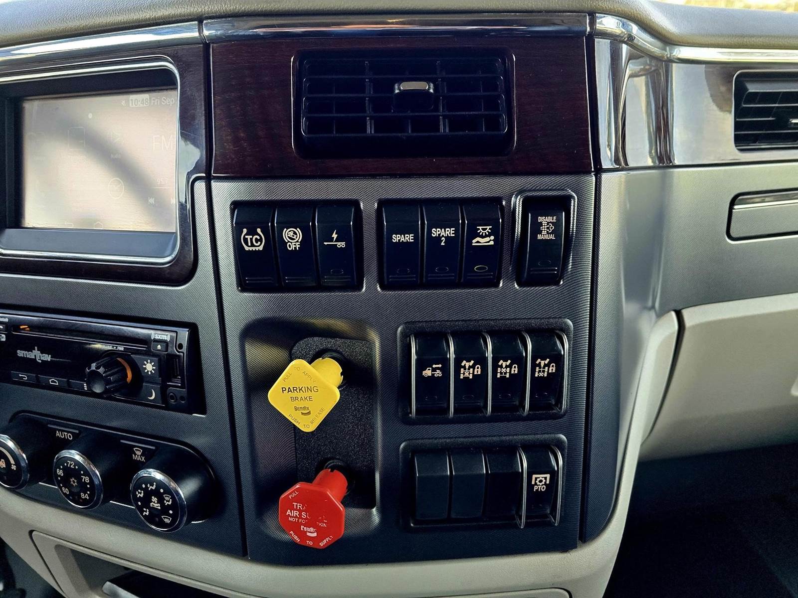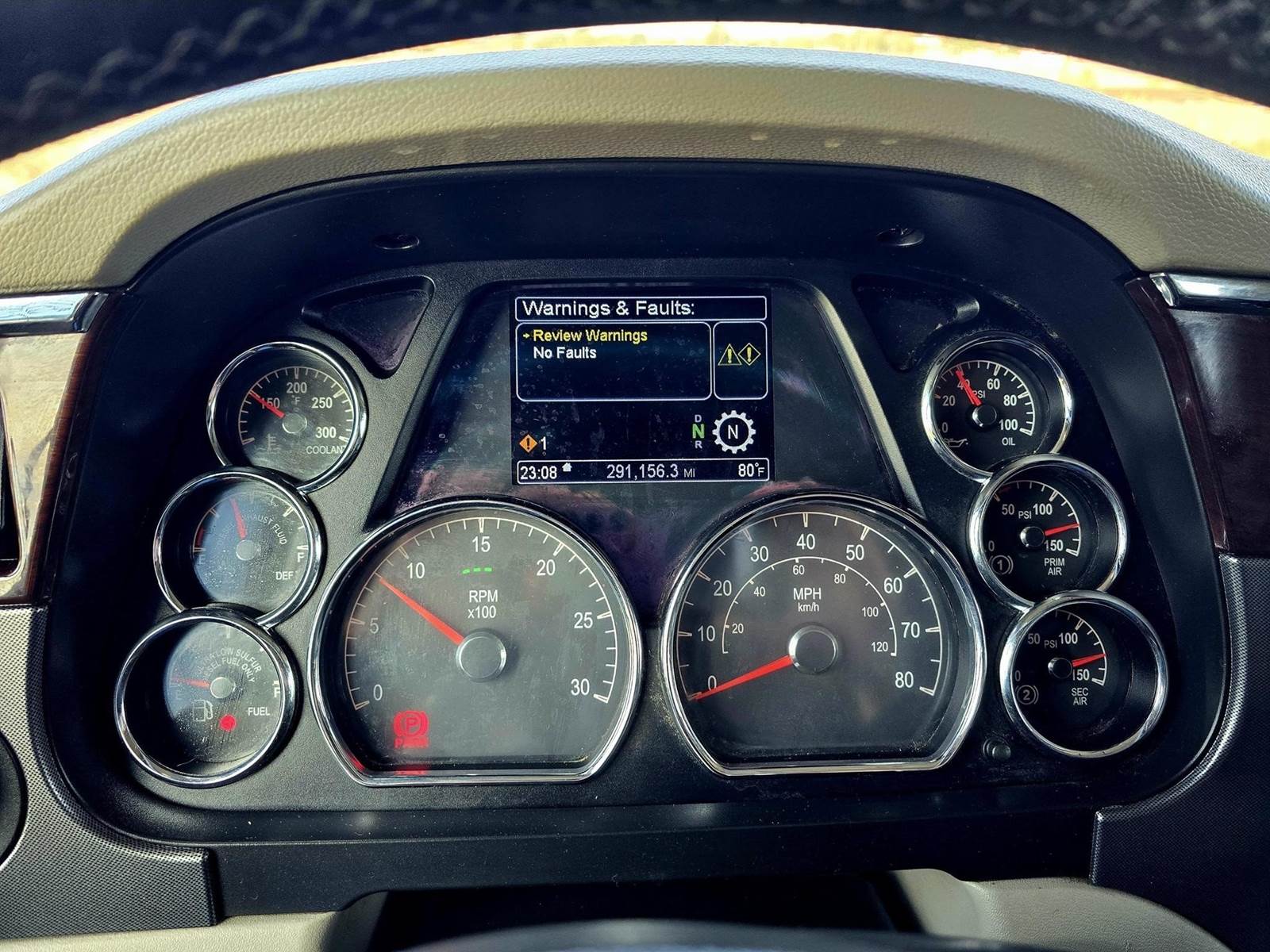 ONLY 291k MILES! Equipped with a 565hp Cummins X15, Eaton 18-Speed Automatic Transmission, 80” Mid Roof Sleeper, 48” Air Slide 5th Wheel, 260” Wheelbase, 3.91 Ratio, 77,999 lb GVWR, Double Frame, Set Front Axle, Chrome Bumper, Chrome Visor, Dual Stacks, Exposed Polished Aluminum Tanks, Escape Hatch Door, Polished Aluminum Wheels, Deep Rubber, Chrome Side Mirrors (Heated), Dual Air Ride Leather Seats, Woodgrain Trim, Refrigerator, 190 Gallon Fuel Capacity, Full Lockers, In-Dash Navigation, Smart Wheel Controls, Bluetooth Radio, Espar Bunk Heater, Inverter & much more!