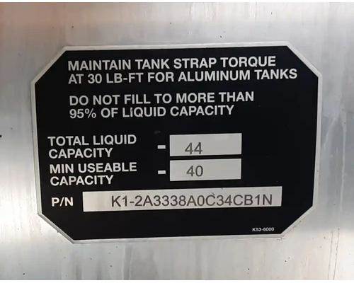 Driver Side LH Split Tank, P/N K1-2A3338A0C34CBIN. 41"L x 26"Dia, 50 Gallon Diesel Capacity, 40 Gallon Washer Fluid Capacity, w/ Straps & Brackets.