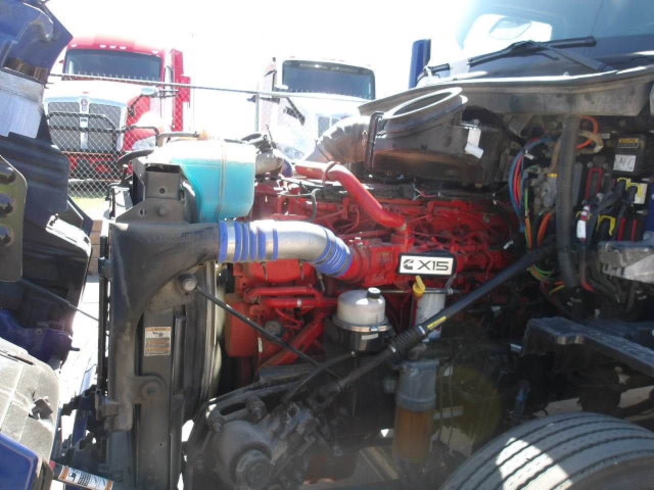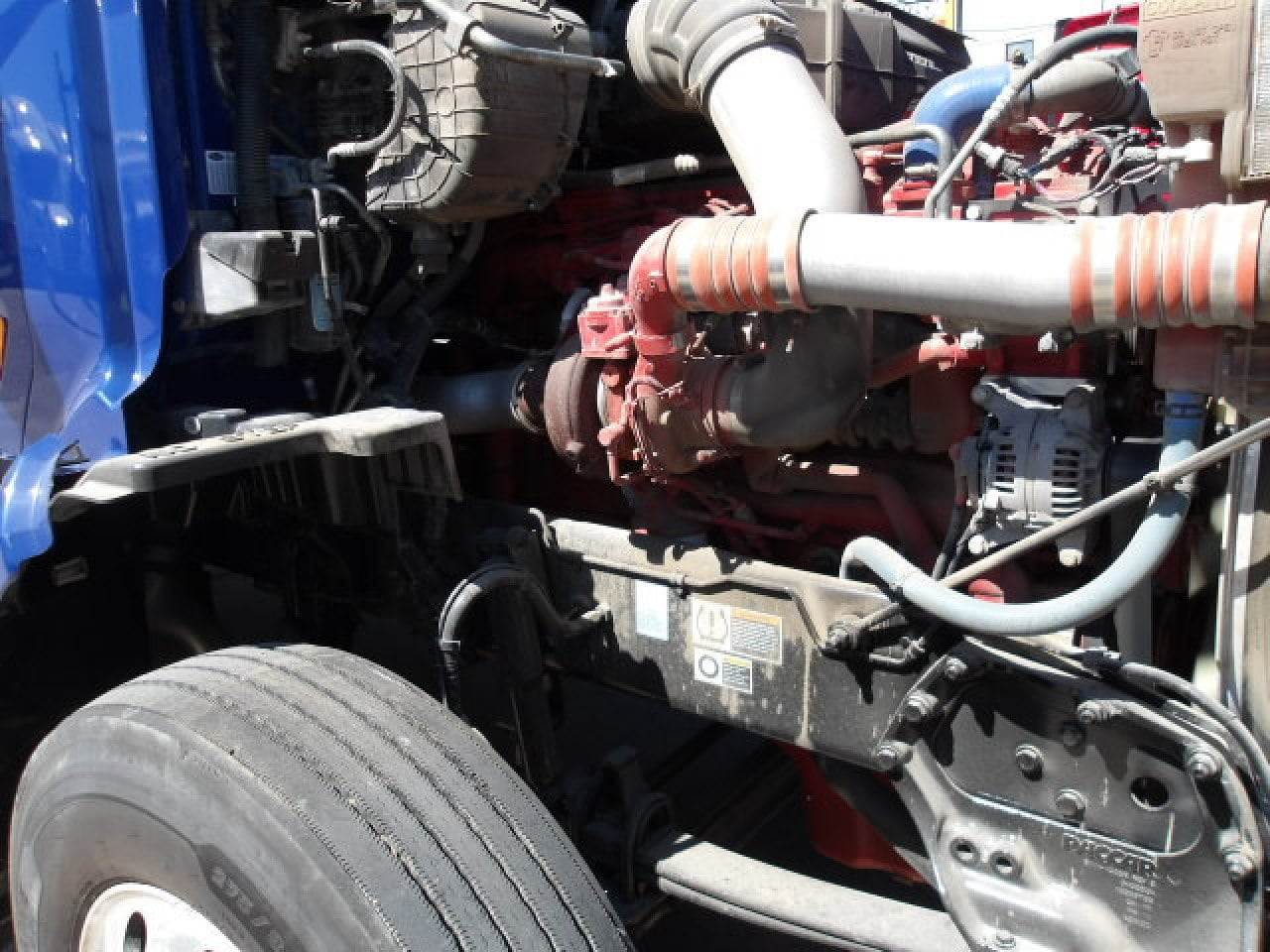 This 2022 Peterbilt 579 is equipped with a Cummins X15 14.9 L 400 HP engine with engine brake paired with an Eaton EEO 17F112C 12 speed automatic transmission and a Paccar 2.79 rear axle ratio. The truck uses a tandem axle configuration rated at 12,000 pounds on the front axle and 38,000 pounds on the rear axle with a 50,000 pound GVWR. It includes dual aluminum fuel tanks totaling 200 gallons, a horizontal exhaust, a steel frame, air ride suspension, and aluminum wheels fitted with 275 80R22.5 tires along with a stationary fifth wheel. The 80 inch sleeper includes dual bunks, gray and black interior, dual high back seats including an air ride passenger seat, dual power mirrors, operational air conditioning, an AM FM Bluetooth radio, and an operational auxiliary power unit. Additional equipment includes heated mirrors, full fairings, and collision avoidance. The exterior is blue with a painted bumper.