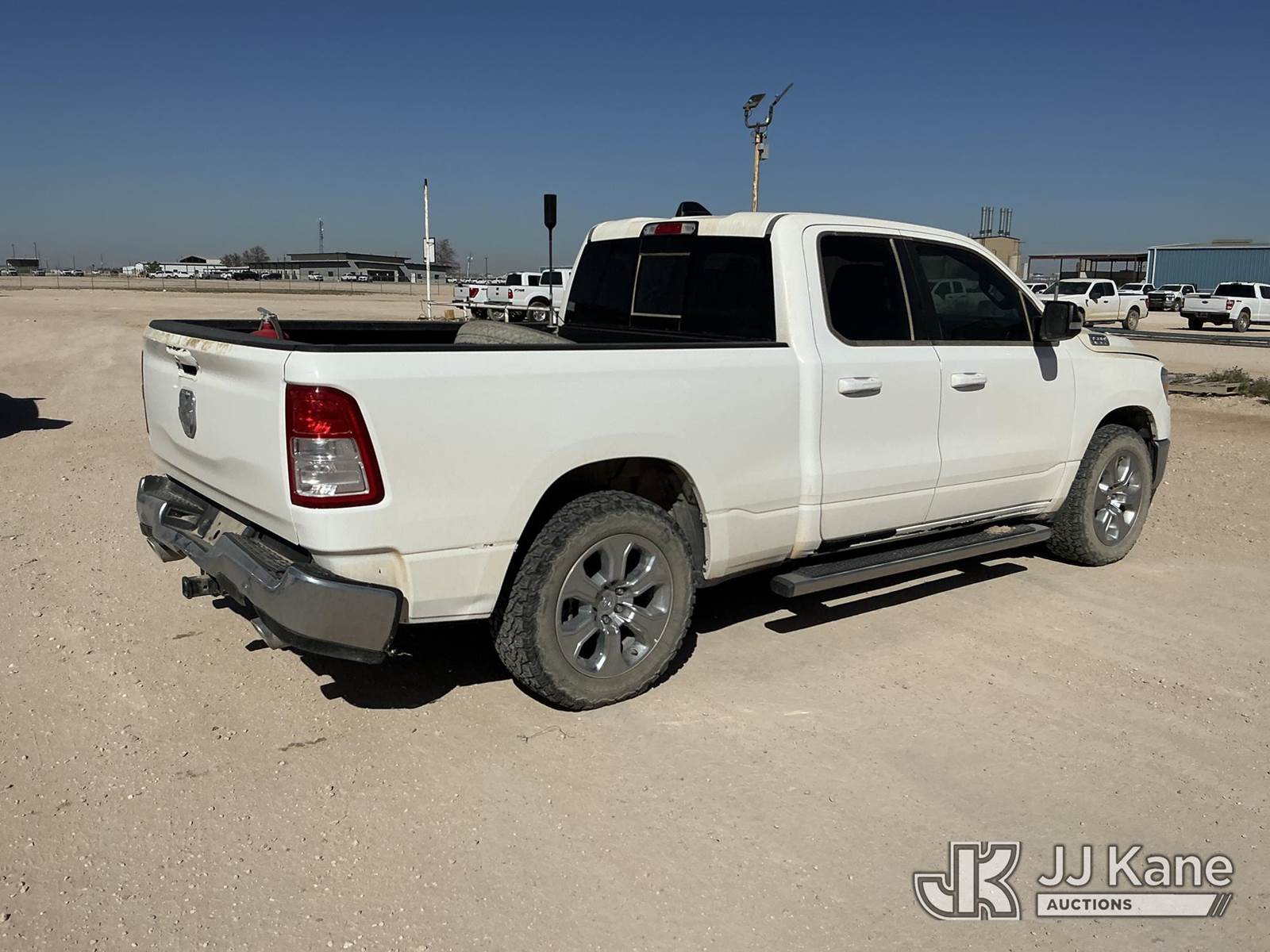 2022 RAM 1500 Crew-Cab Pickup Truck, 8-cyl gas, 4WD, 8-Speed Automatic, A/C, with computer work station, toolbox , (48,538 miles) (Runs & Moves)(Jump To Start, Check Engine Light On, Paint & Body Damage, Tailgate Does Not Open) (Seller States: Mechanical Electrical Issues Truck Moves But Soon Stops & Shuts Off.) (Reads 3,731 hours) This is a Titled Item NOTE: This unit is being sold AS IS/WHERE IS via Timed Auction and is located in Midland, TX. For pre-sale questions please call EJ Brown at (915) 341-2565. (Buyer is responsible for removal. Assistance by consignor or JJ Kane Auctions is not assured.)