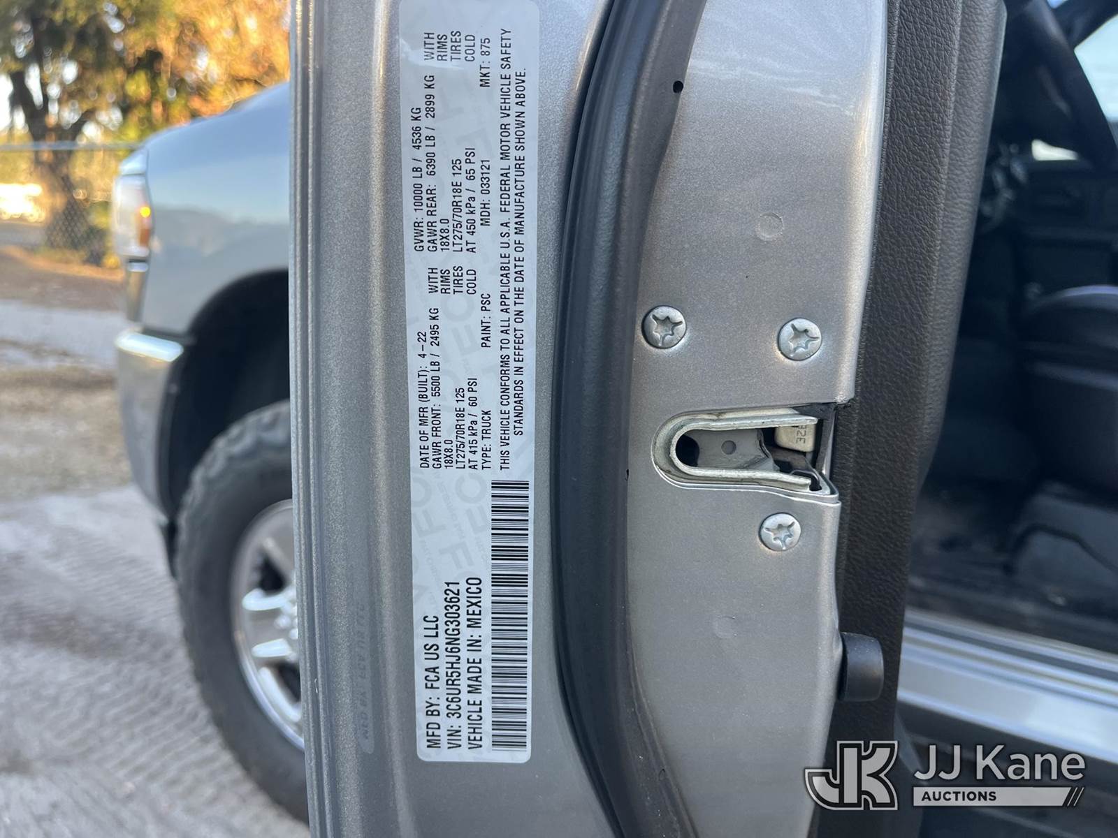 2022 RAM 2500 4x4 Crew-Cab Pickup Truck, 6.4L V8 gas, 6-Speed Automatic, A/C, (53,787 miles) Hillsborough County Sheriff's Office Unit, Former Police Vehicle (Runs & Moves) (FL Residents Purchasing Titled Items – tax, title & registration fees will be collected at the maximum rate of $400.00 under 25,999 and $800.00 for Over 26,000 and $250.00 trailers – Proof of insurance is mandatory; Out of State Residents Purchasing Title Items – tax will be collected based upon your state rate) This is a Titled Item NOTE: This unit is being sold AS IS/WHERE IS via Timed Auction and is located in Thonotosassa, FL. Inspection & preview days for this unit are the 2 business days prior to the first day of items closing for this auction, item is located at 11720 N US 301 Thonotosassa, Fl 33592 and hours of operations are 8a-4p. For pre-sale questions, please contact Office Staff @ (813) 986-2485. (Buyer is responsible for removal. Assistance by consignor or JJ Kane Auctions is not assured.)