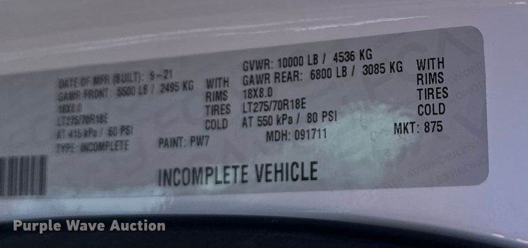 2022 Chevrolet 3500 HD Crew Cab pickup truck, Miles: 34,317 on odometer, Hours: 8,438 on meter, VIN: 1GB4WRE79NF264496, Engine,...