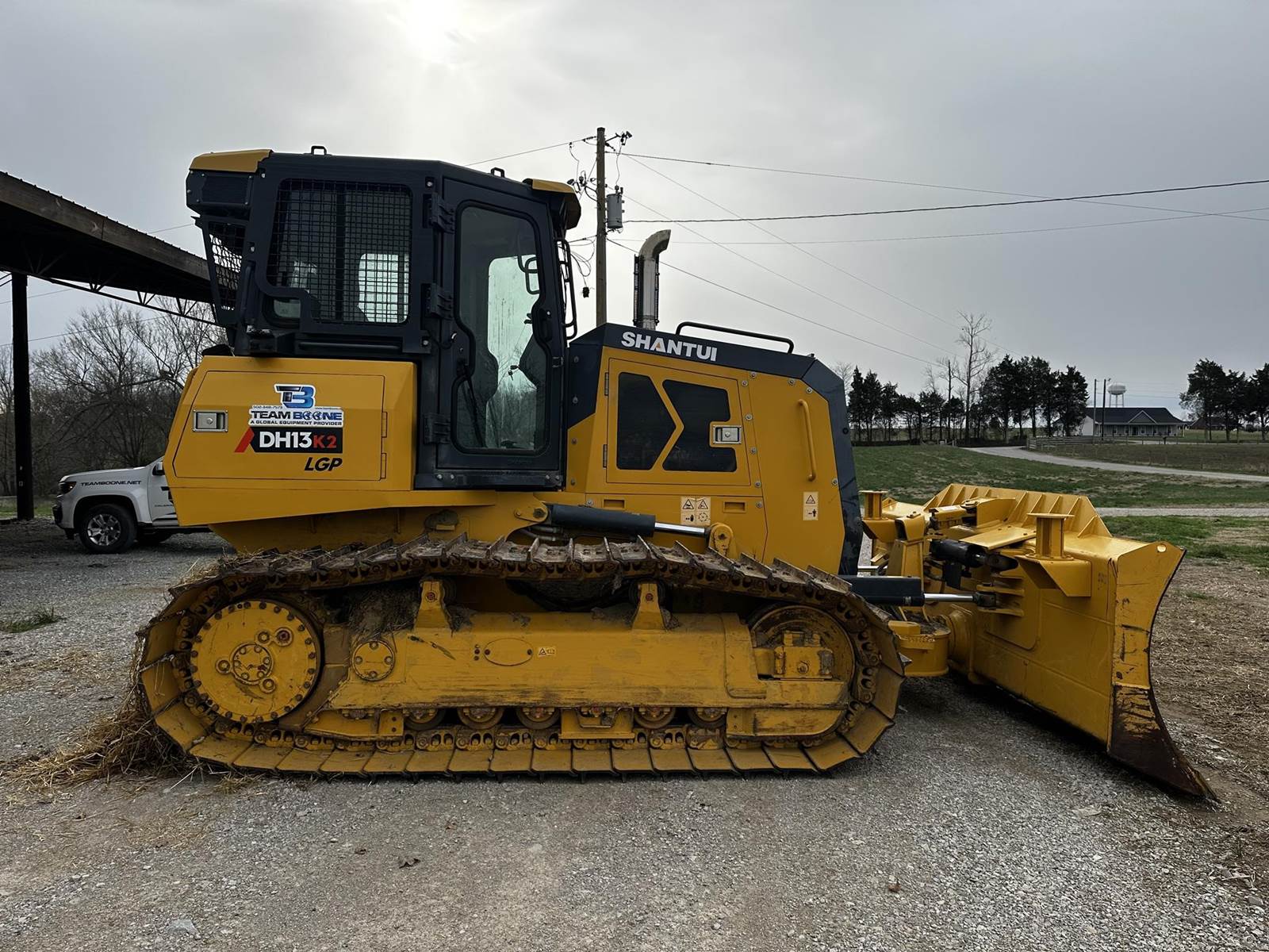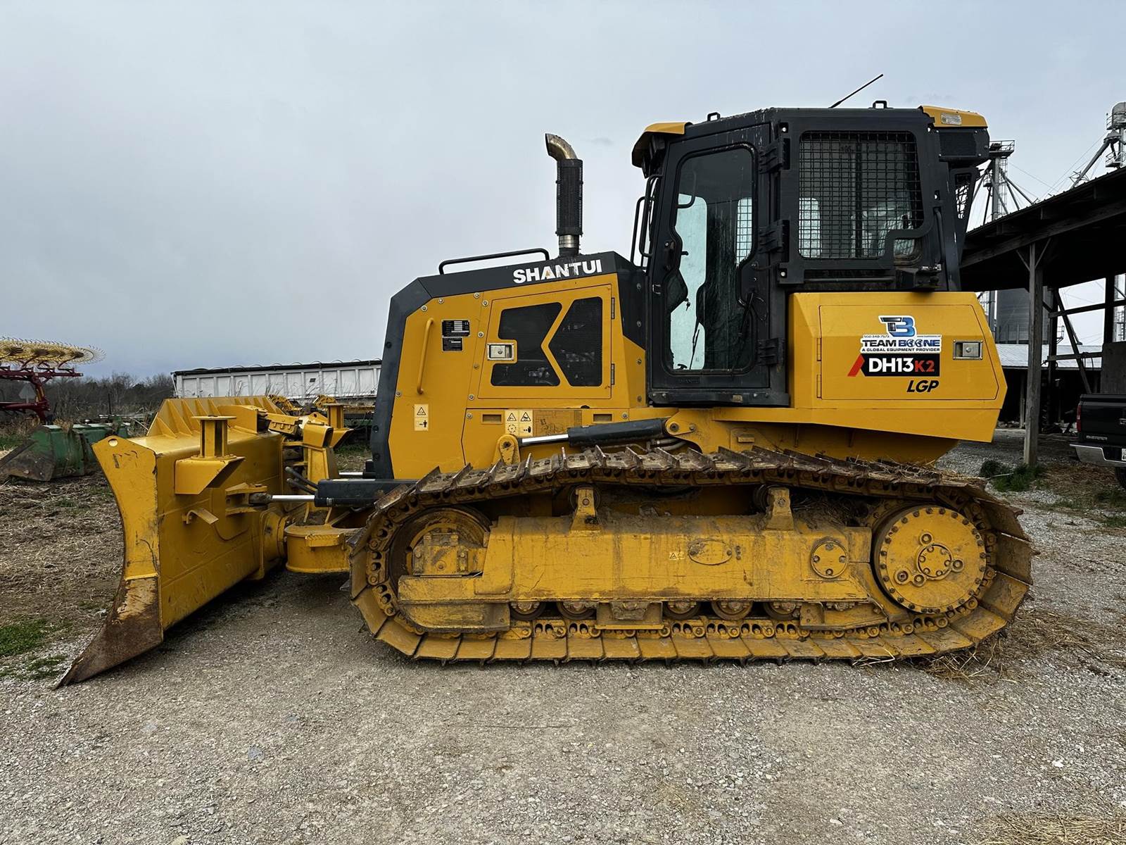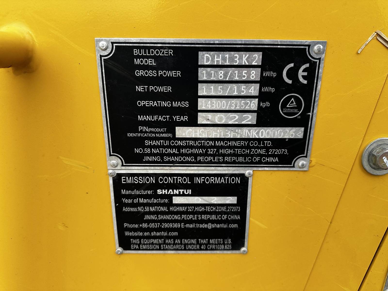 2020 Shantui DH13K2 dozer has an operating weight of 32,850 lb, 154 hp measured at 2200 rpm, mx fwd speed of 6.2 mph, max rev speed of 6.2 mph. Some key features for this machine include the enclosed cab with heat and A/C and the power angle tilt.