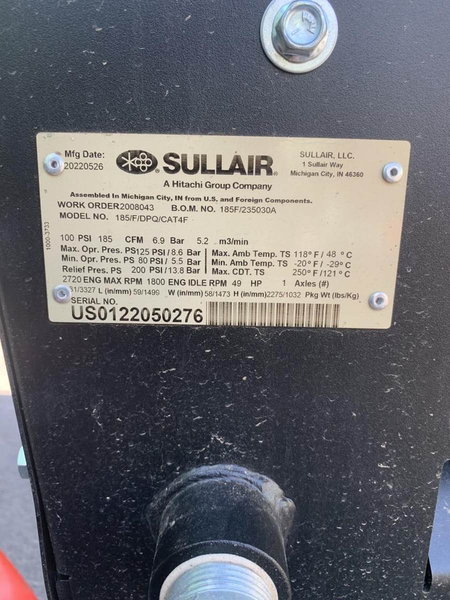 2022 Sullair DPQ185CA Air Compressor