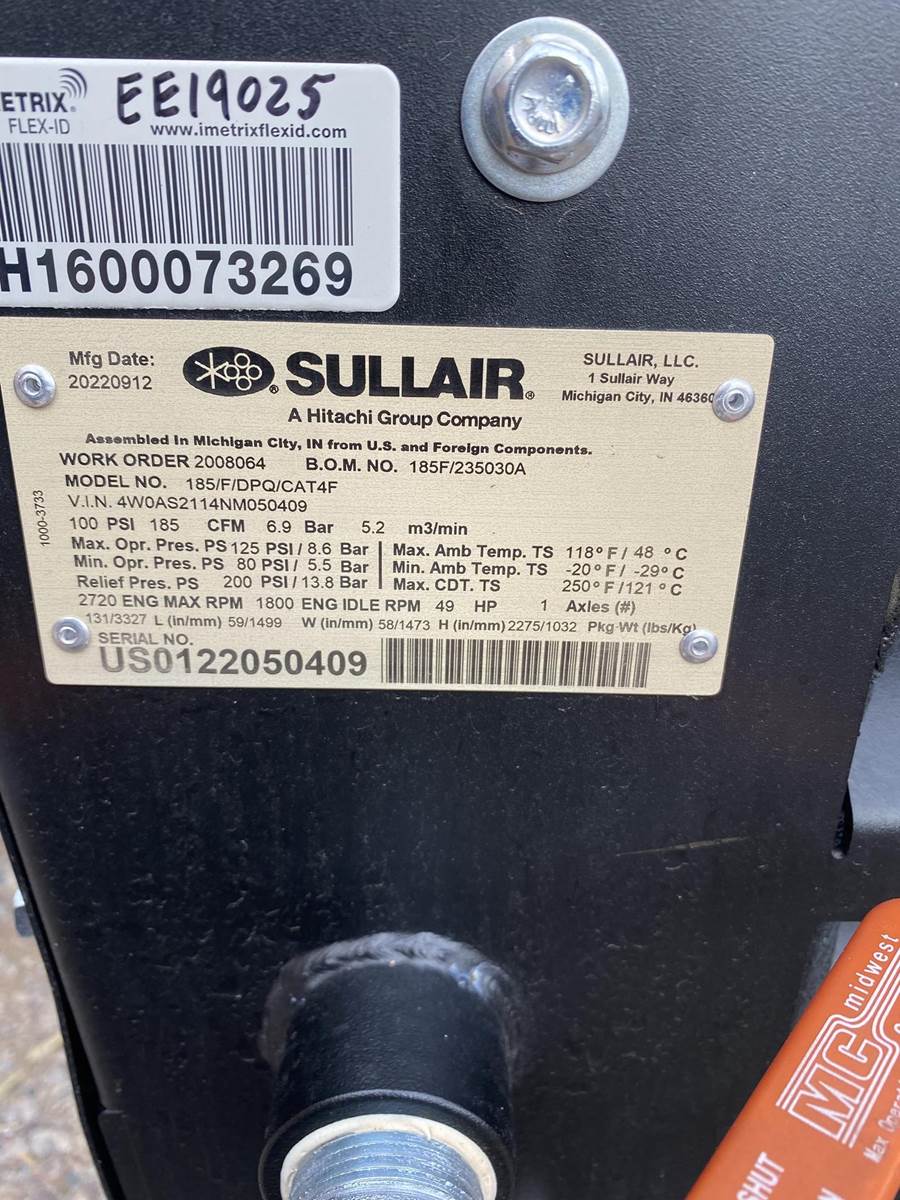 2022 Sullair DPQ185CA Air Compressor
