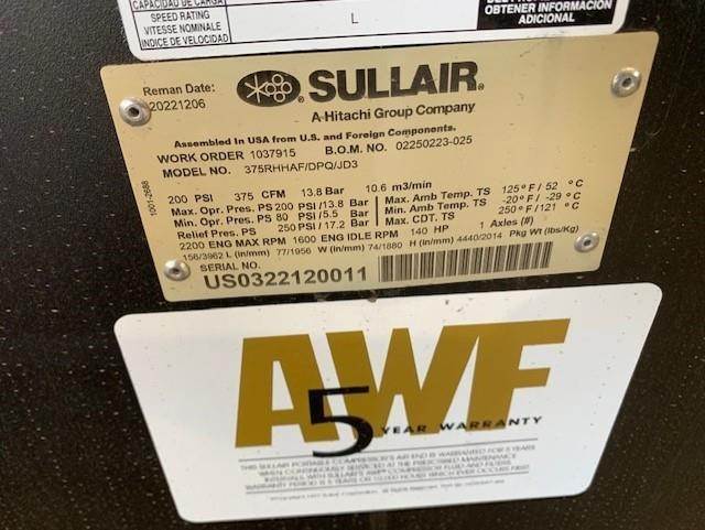 2022 Sullair DPQ375HAF Air Compressor