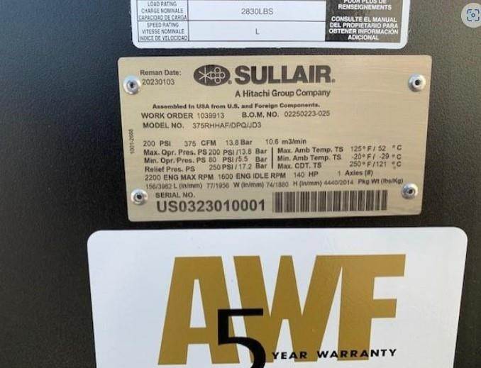 2022 Sullair DPQ375HAF Air Compressor