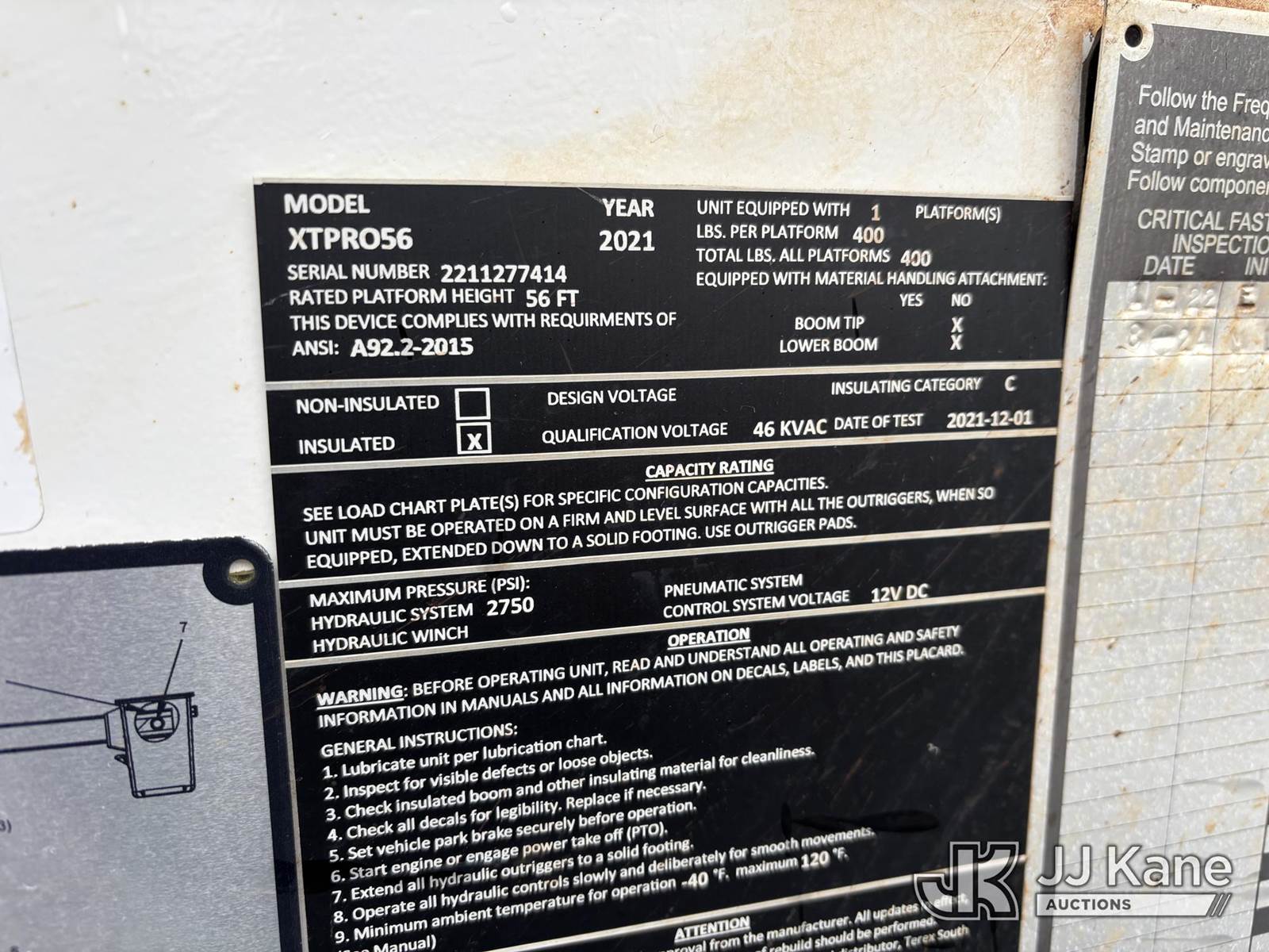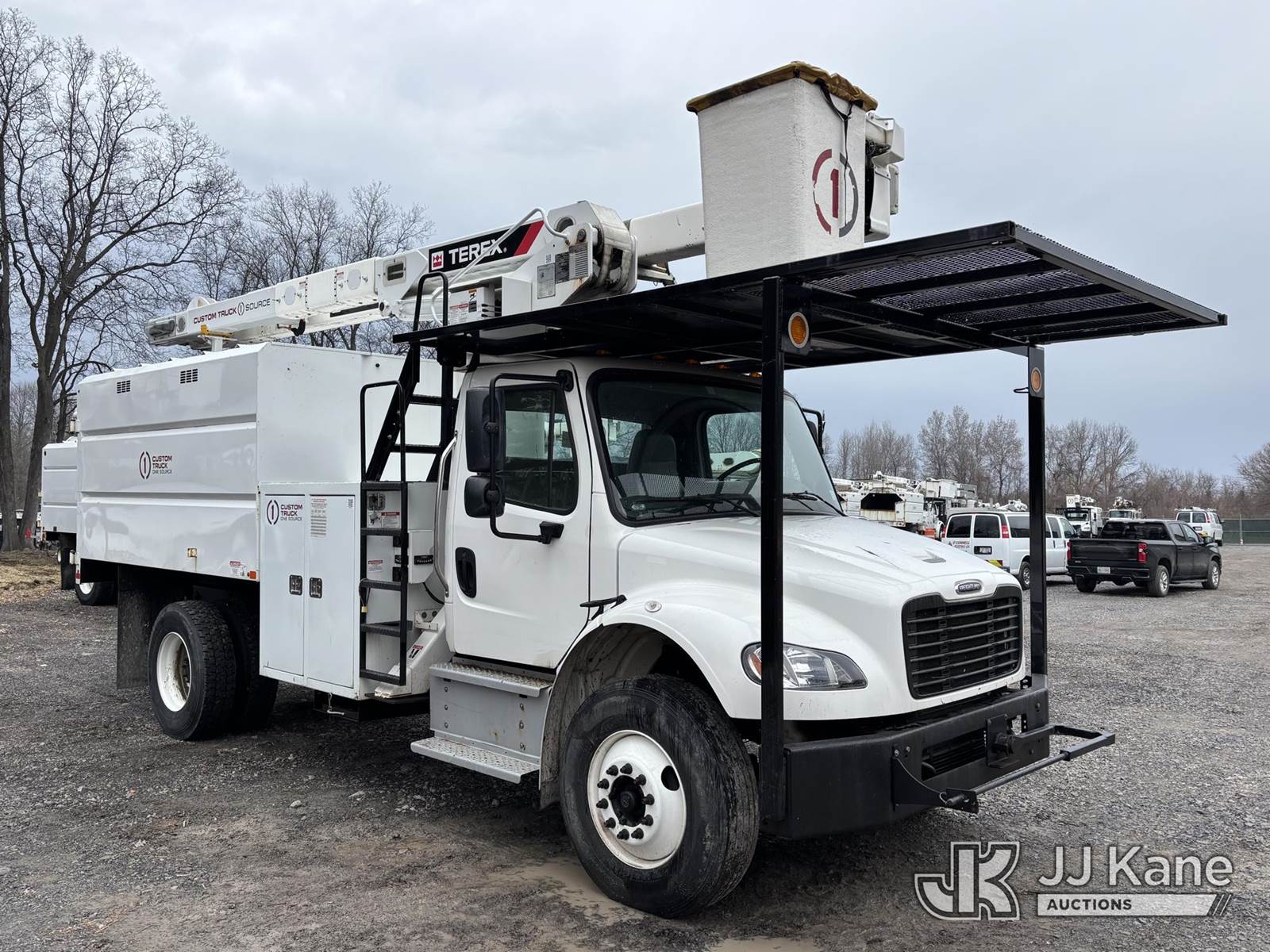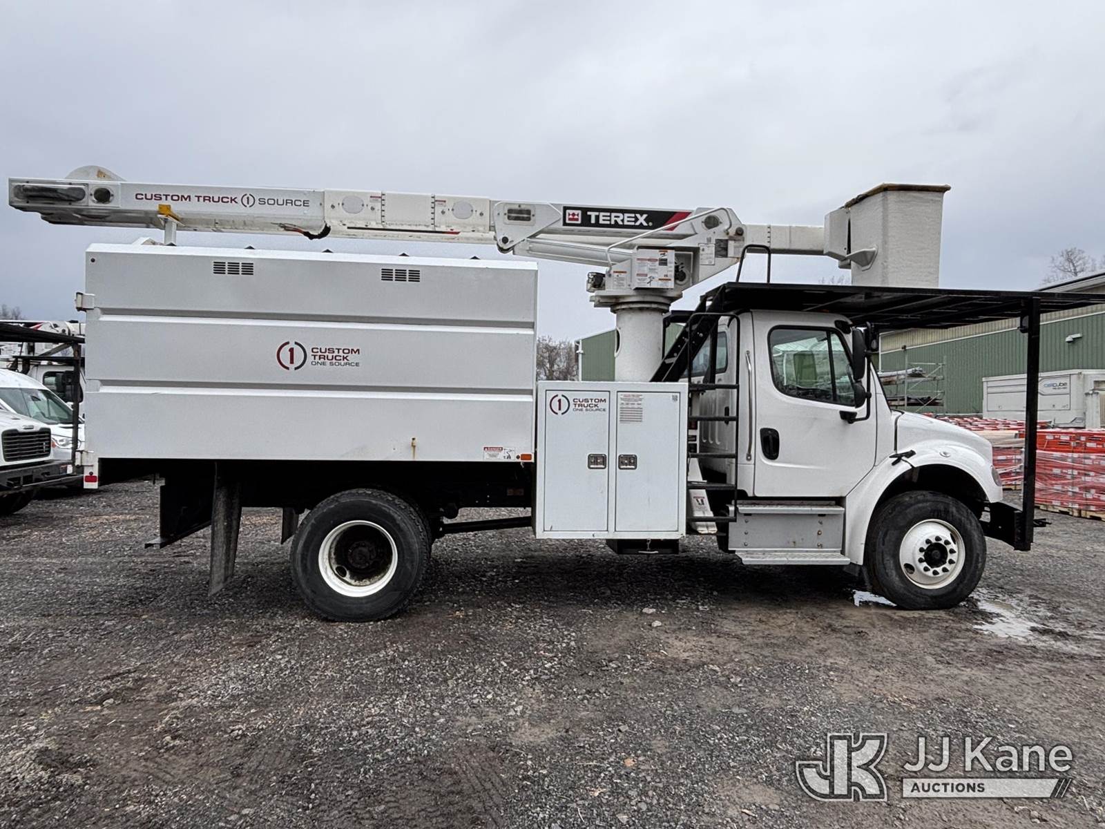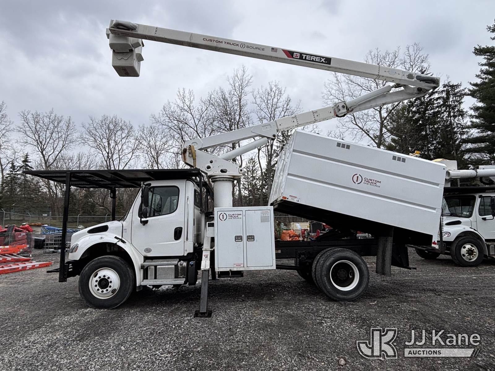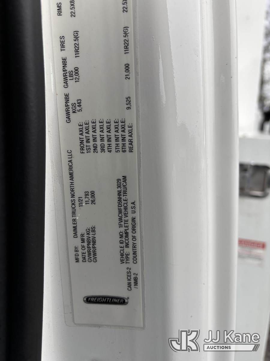 Terex XTPRO56, 61 ft, Over-Center Bucket Truck s/n 2211277414, with single-man bucket & 2 hyd outriggers, mounted behind cab on 2022 Freightliner M2 Chipper Dump Truck, Cummins 6.7L diesel, Auto, A/C, (25,488 miles) (Runs, Moves & Operates) (Body, Rust & Paint Damage) (Reads 567 hours) This is a Titled Item NOTE: This unit is being sold AS IS/WHERE IS via Timed Auction and is located in Victor, NY. For pre-sale questions, please contact Adel Cekic at adel.cekic@jjkane.com. Inspection by appointment only. Removal of items will begin the day following the sale and continue Monday through Friday, 8:00 am to 4:00 pm. Purchaser acknowledges ALL lots must be removed within (7) business days or a storage fee may be incurred. There will be no payments accepted onsite. Buyer/Hauler must present a copy of the (Paid in Full) Invoice or Release Form upon arrival. Please refer to the Pick Up Terms listed on the Release Form sent out after purchase. (Missing manuals, See Auction Company for Manufacturers Information to obtain manuals) (Buyer is responsible for removal. Assistance by consignor or JJ Kane Auctions is not assured.)