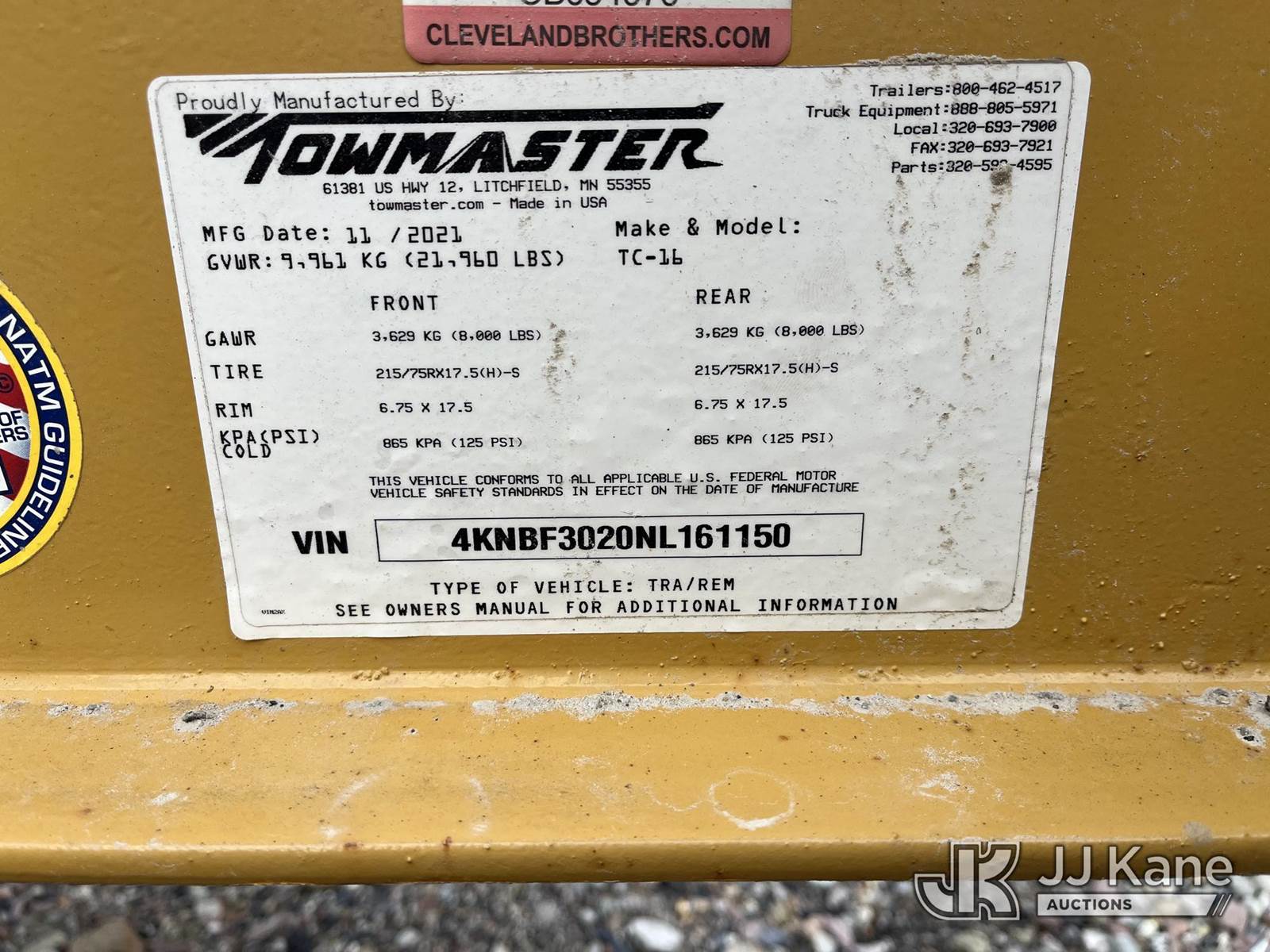 2022 Towmaster TC-16 T/A Tagalong Equipment Trailer, with 20ft x 8ft level deck over wheels with 5ft dove tail & ramps, (Worn Tire) This is a Titled Item NOTE: This unit is being sold AS IS/WHERE IS via Timed Auction and is located in Somerset, PA. (Buyer is responsible for removal. Assistance by consignor or JJ Kane Auctioneers is not assured.)